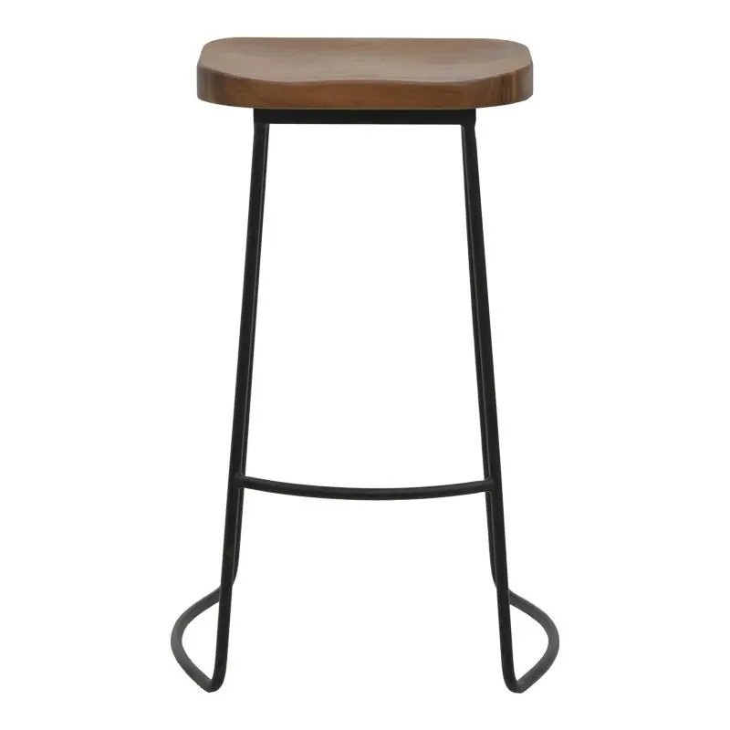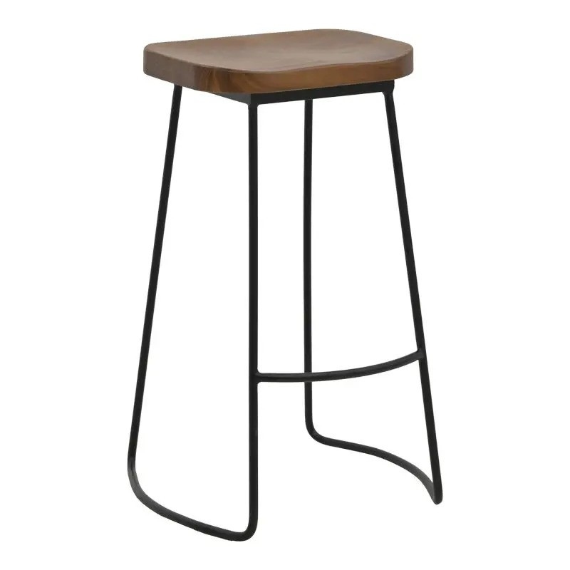Бар стол с дървена седалка и метална основа