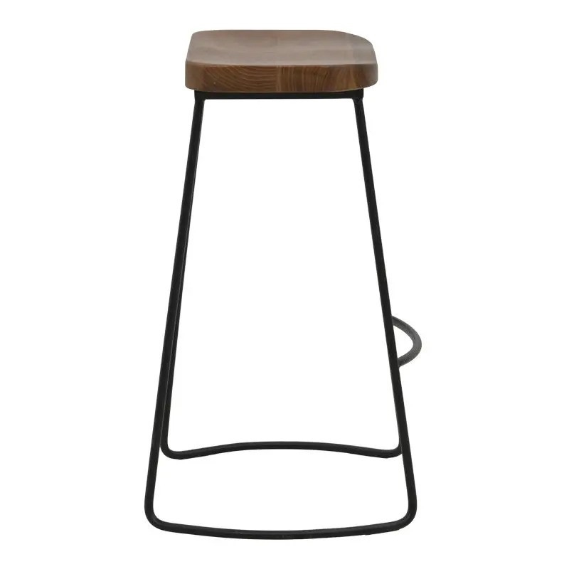 Модерен бар стол с  дървена седалка в цвят орех и метална основа в черно.