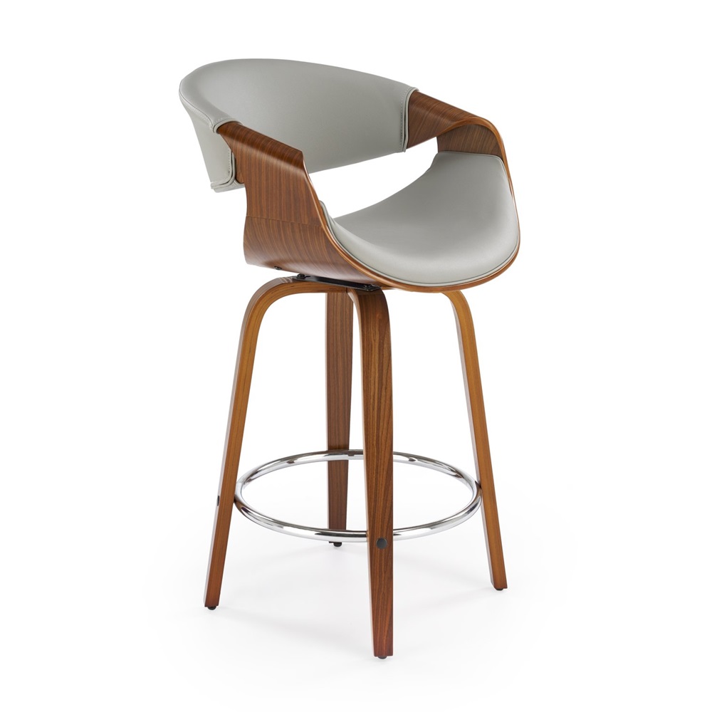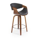 Стилен бар стол с нестандартен дизайн, крака в цвят орех и дамаска от еко кожа.
