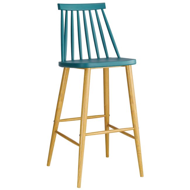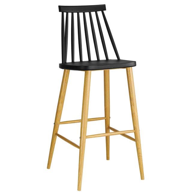 Бар стол с облегалка и седалка от полипропилен и метална основа в светъл дървесен цвят, серия Лола.