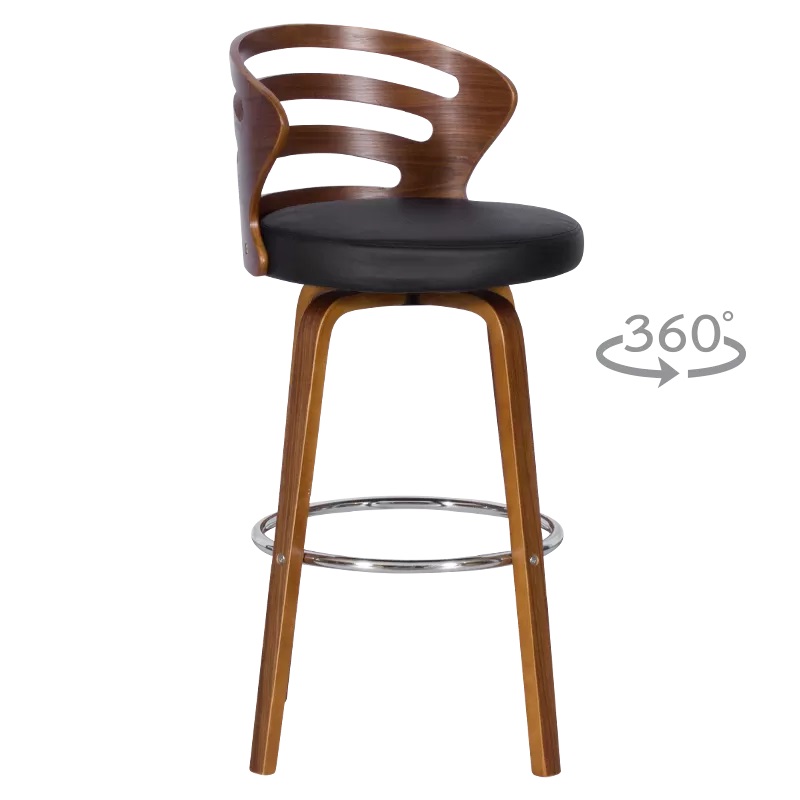 Стилен бар стол с въртене на 360°, изработен в цветова комбинация орех с черно, Нелсон.