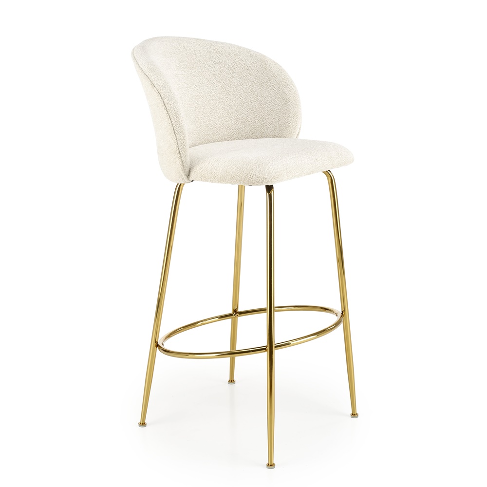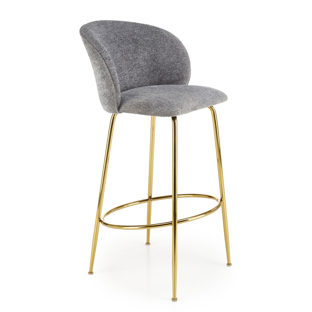 Красив бар стол със златисти крака и седалка и облегалка с текстилна дамаска.
