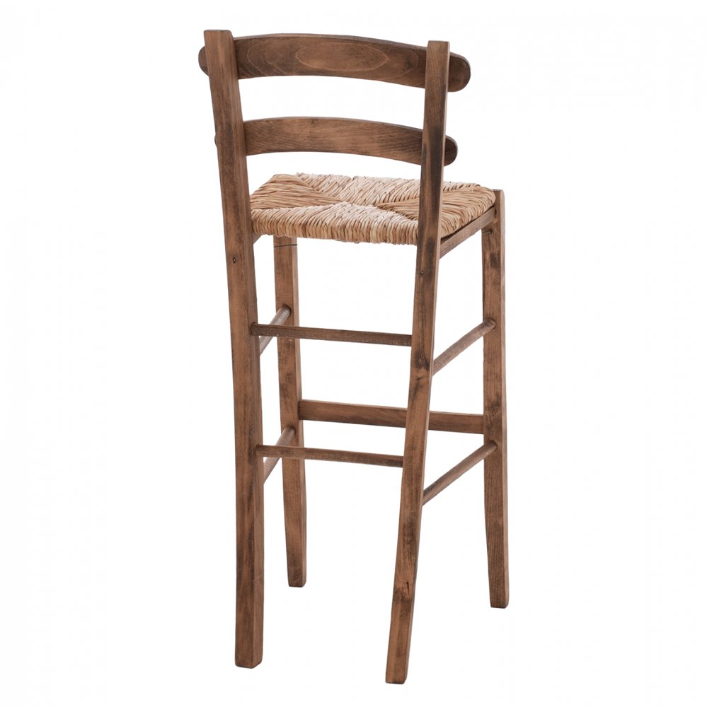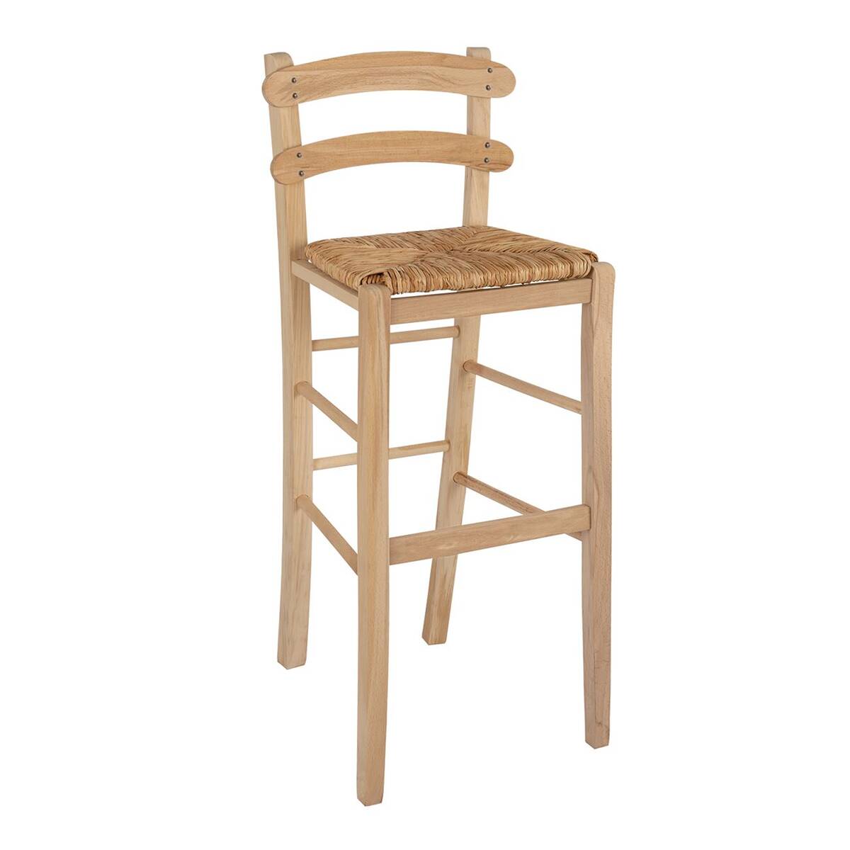Бар стол за таверна от бук в натурален цвят или в цвят орех със сламена седалка Лира.