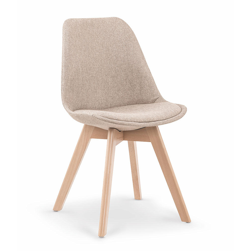 Бежов трапезен стол в скандинавски стил, с дървени крака от масив и висококачествена дамаска, подходяща за всички сезони.