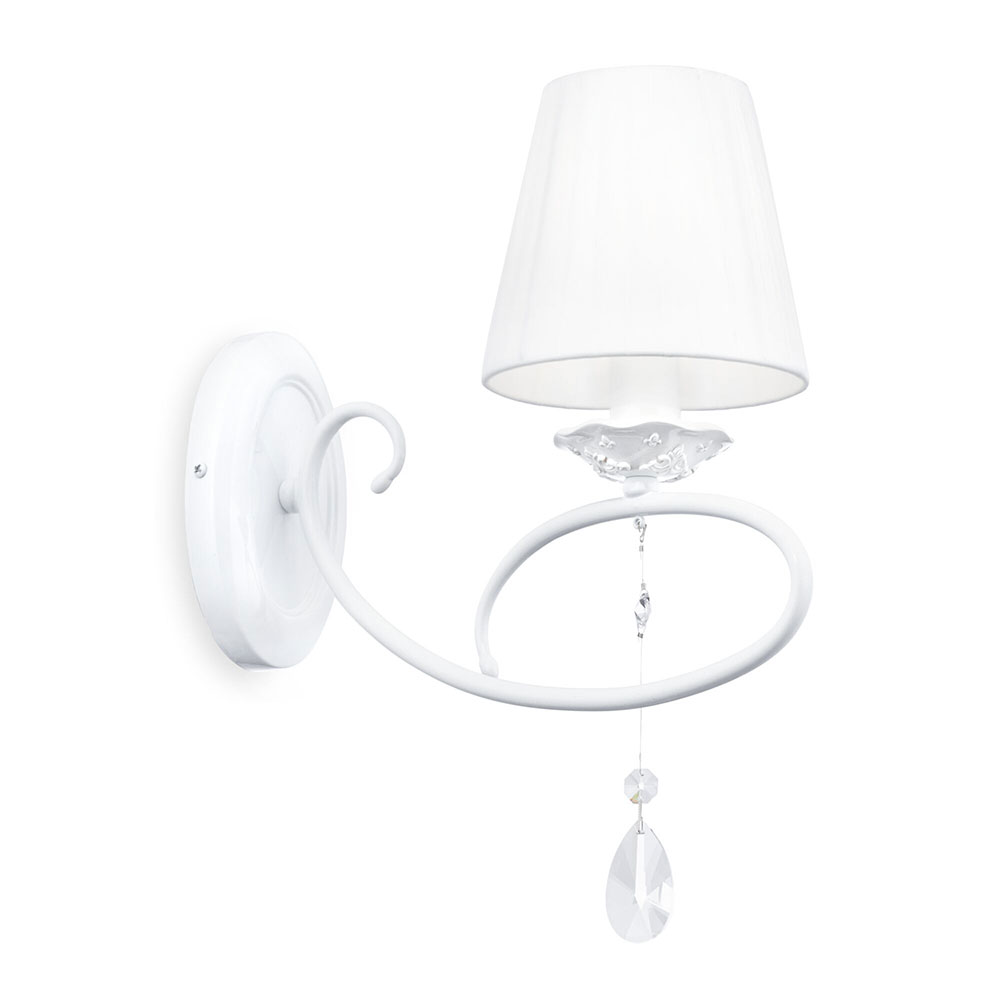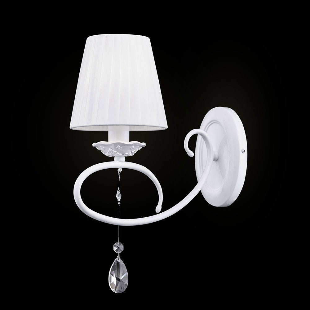 Изискан бял аплик с метална основа, плисирана шапка с органза и кристална висулка Maytoni, серия Passarinho.