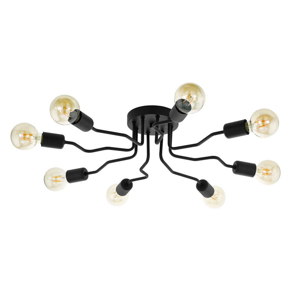 Метален плафон в индустриален стил с кръгла основа и осем тела, Eglo, серия Orazio.
