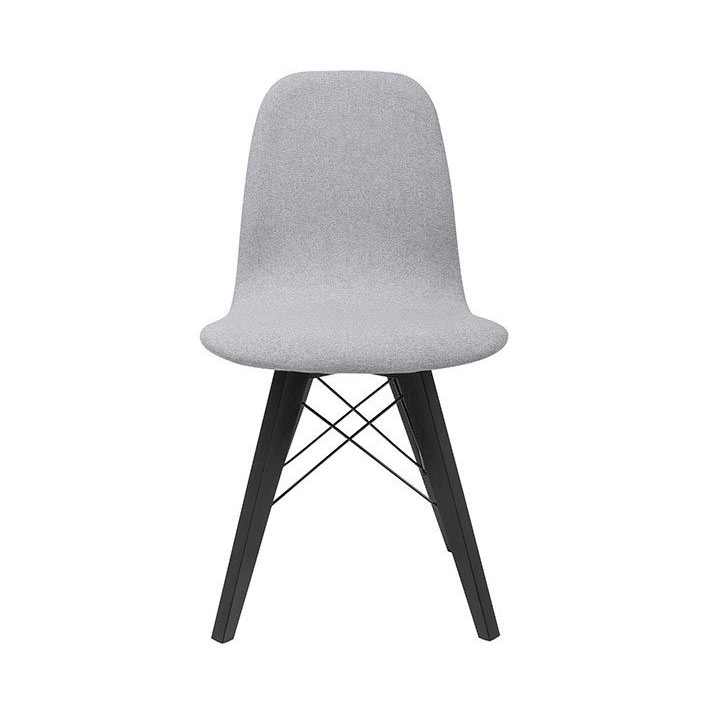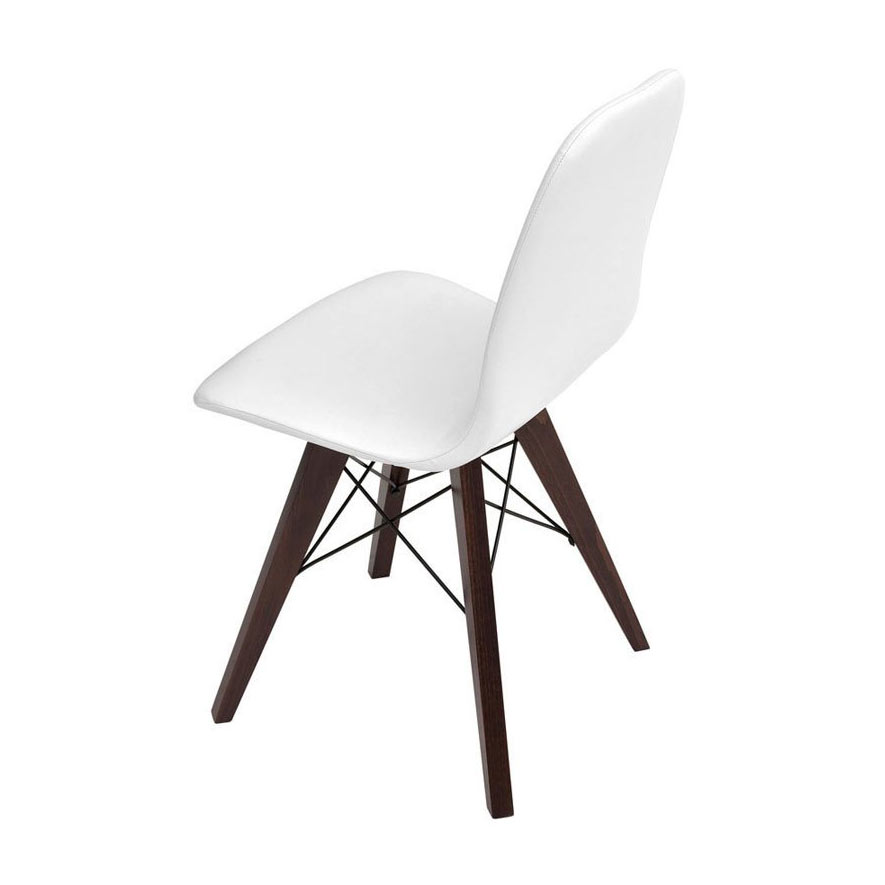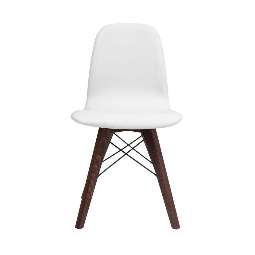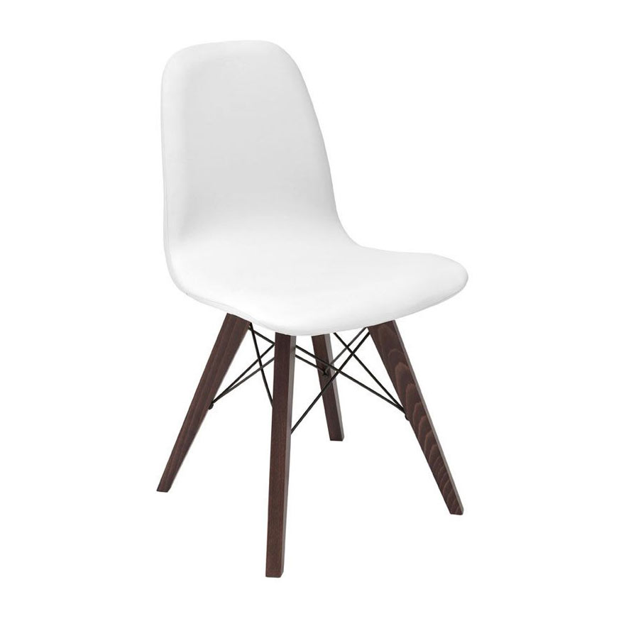 Бял или сив трапезен стол с тапицерия от еко кожа и дървени крачета в черно или с текстилна дамаска и крачета в цвят венге, модулна система Ацтека.