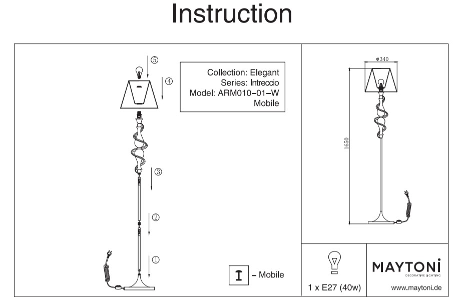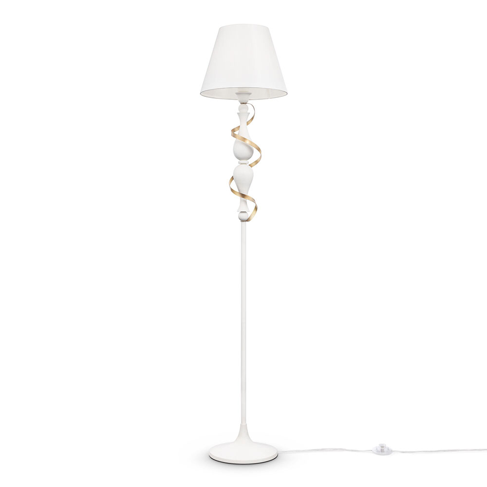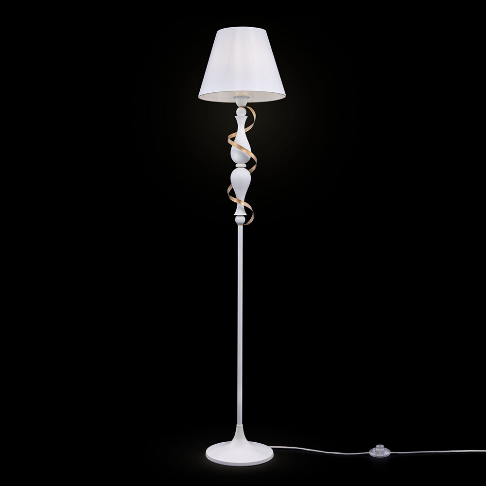 Бял лампион с метална основа и златиста декоративна панделка с текстилна шапка върху PVC рамка Maytoni, серия Intreccio.