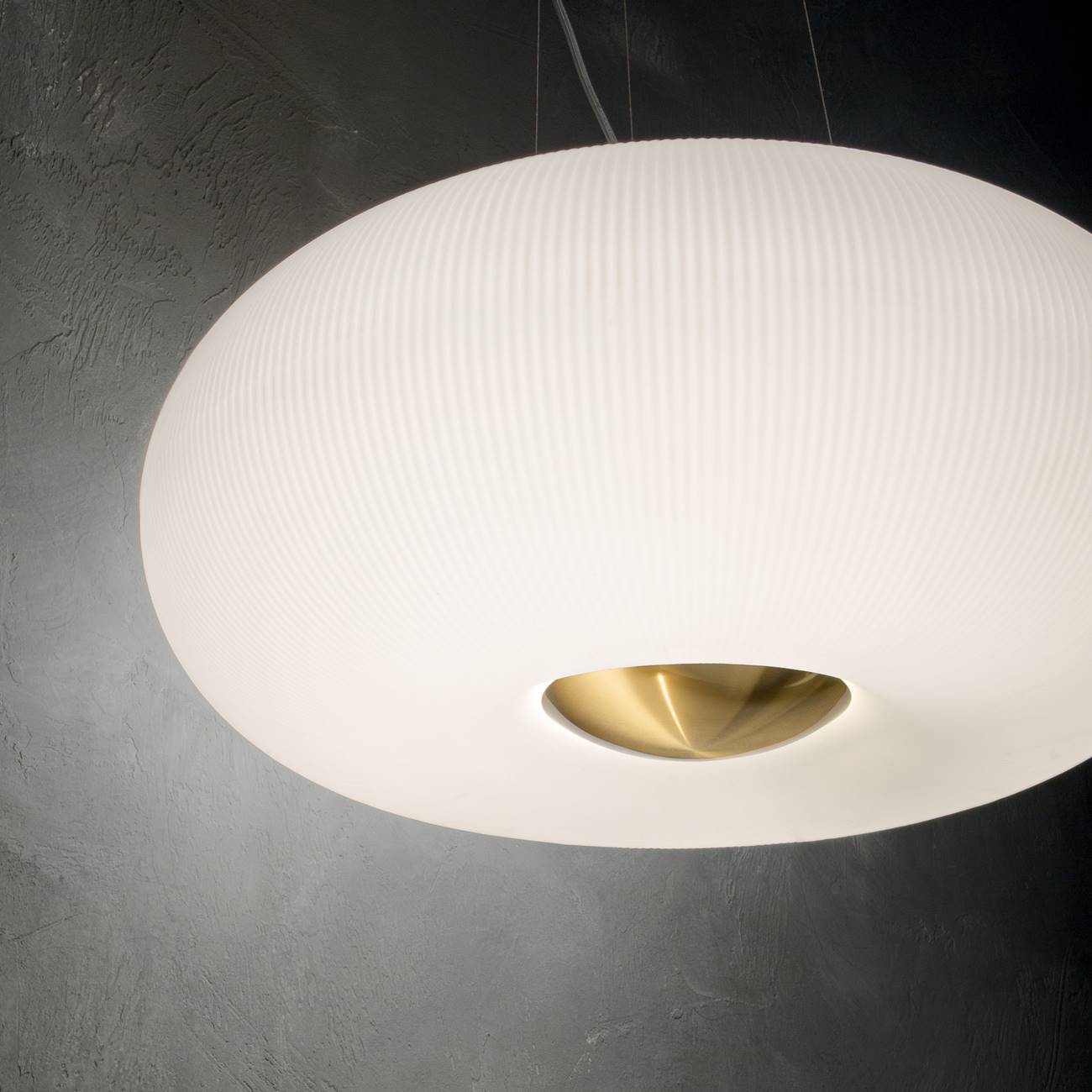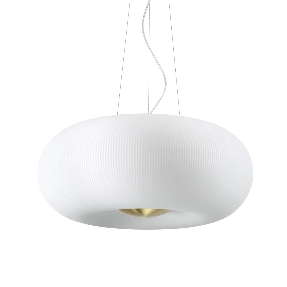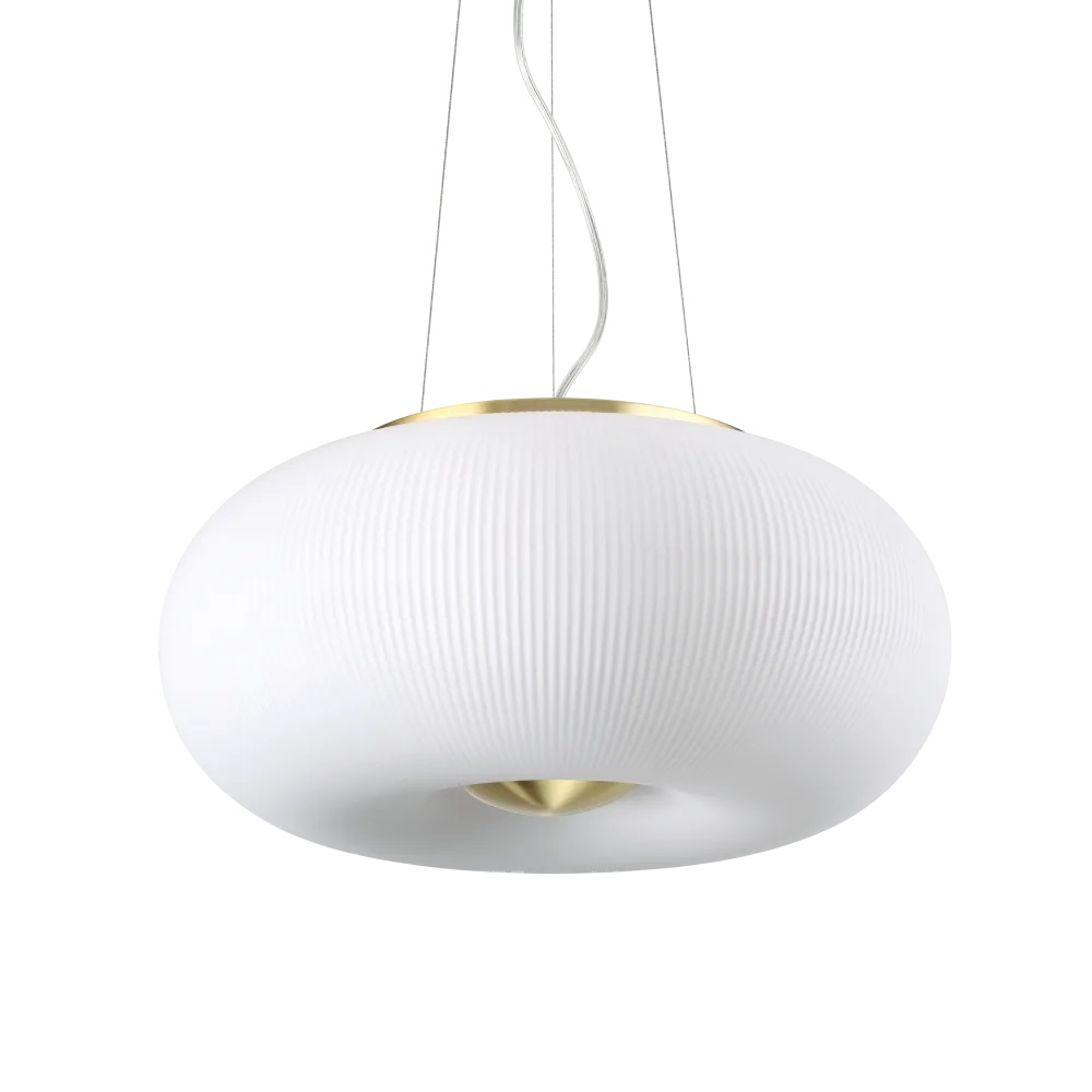 Изработен от матово бяло стъкло с фина релефна текстура, той разпръсква мека и равномерна светлина.