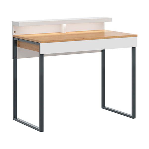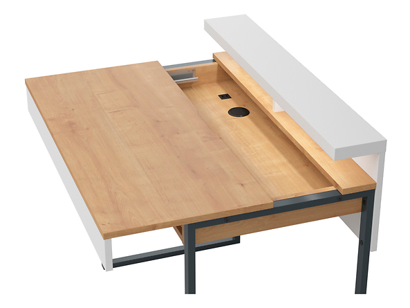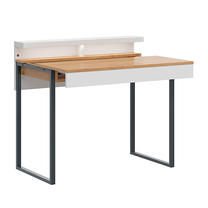 Модерно бюро с плъзгащ се плот и LED осветление в цвят дъб арлингтън и бяло