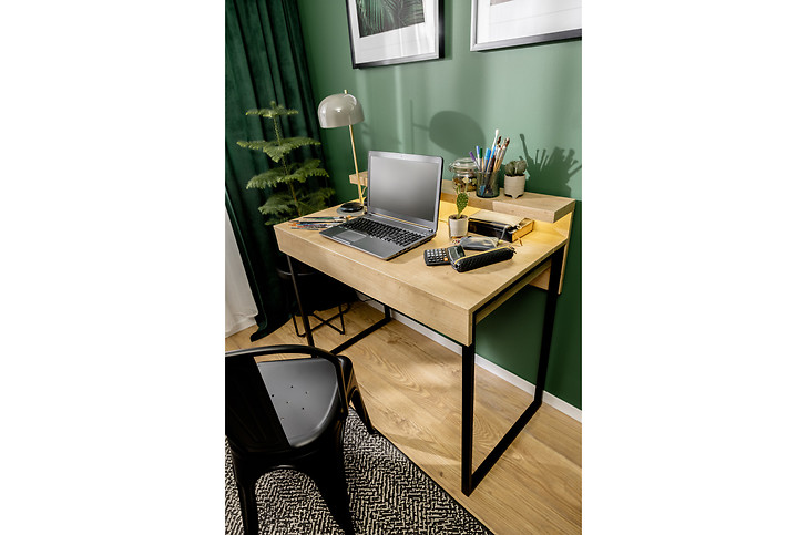 Тази мебел се отличава с висока функционалност, като предоставя възможност за съхранение на офис материали под плъзгащ се плот и практичен рафт за органайзер на химикалки или поставяне на монитор. Силата на вграденото осветление може да се регулира спрямо нуждите. Възможност за ползване като тоалетка в спалнята.