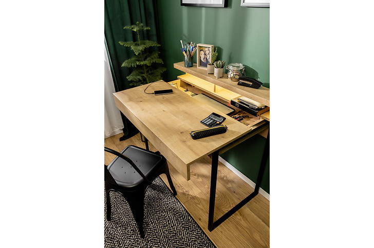 Модерно бюро с плъзгащ се плот и LED осветление в цвят дъб арлингтън - отблизо