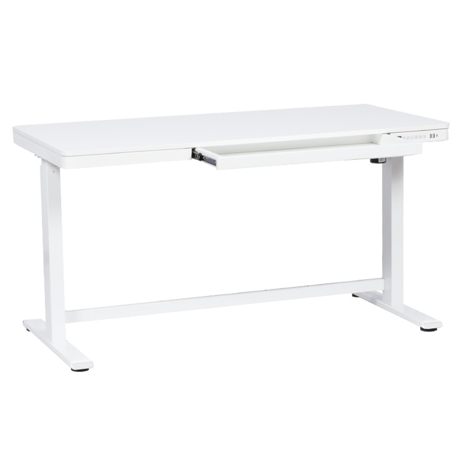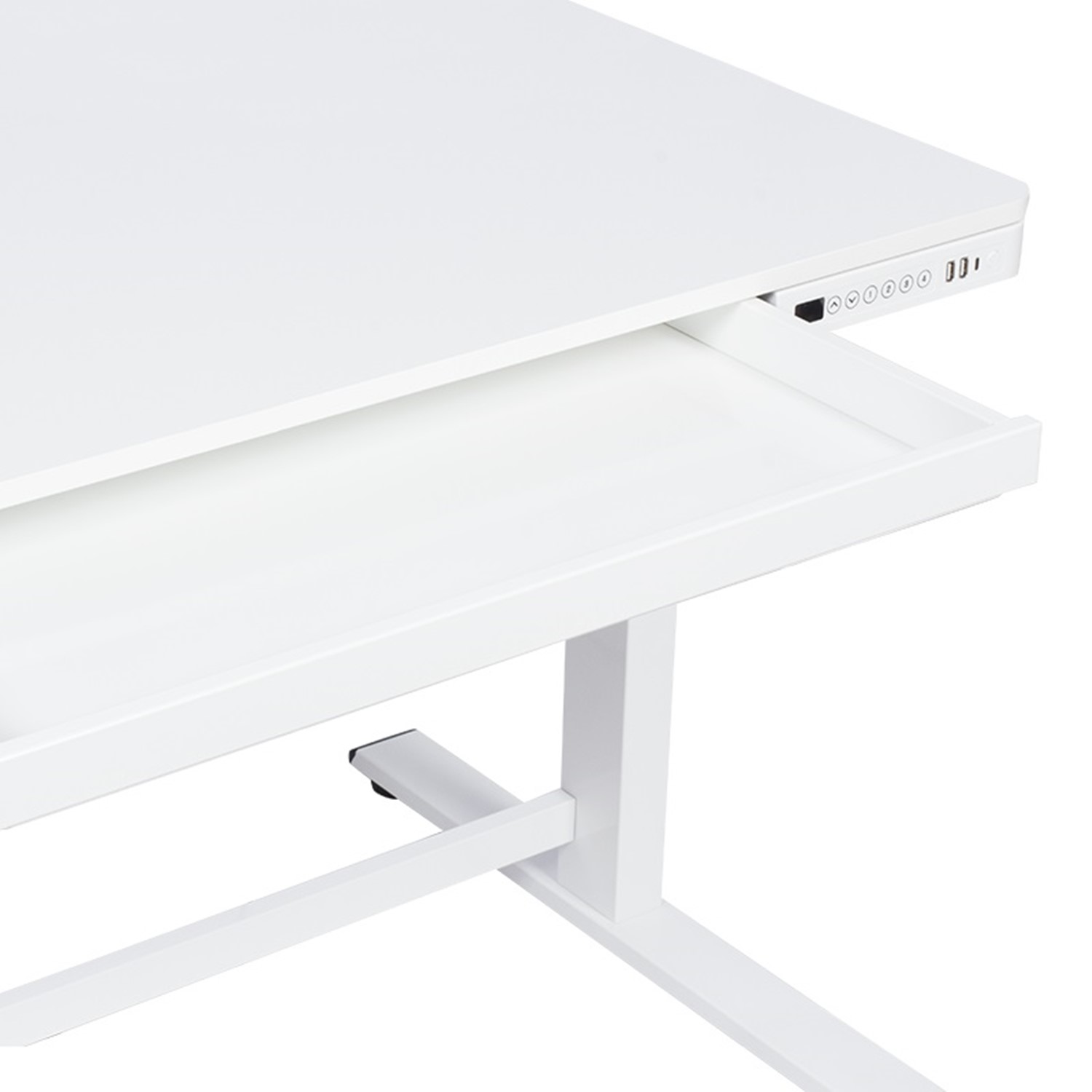 Бяло ергономично бюро с регулируема височина и USB порт детайли, чекмедже