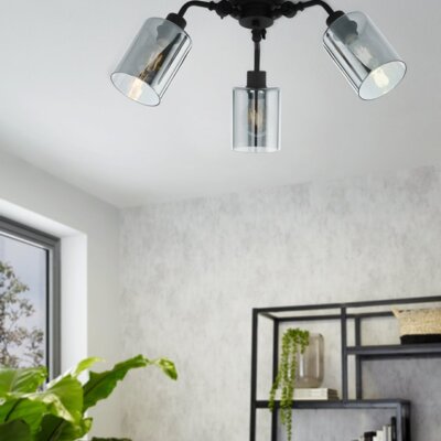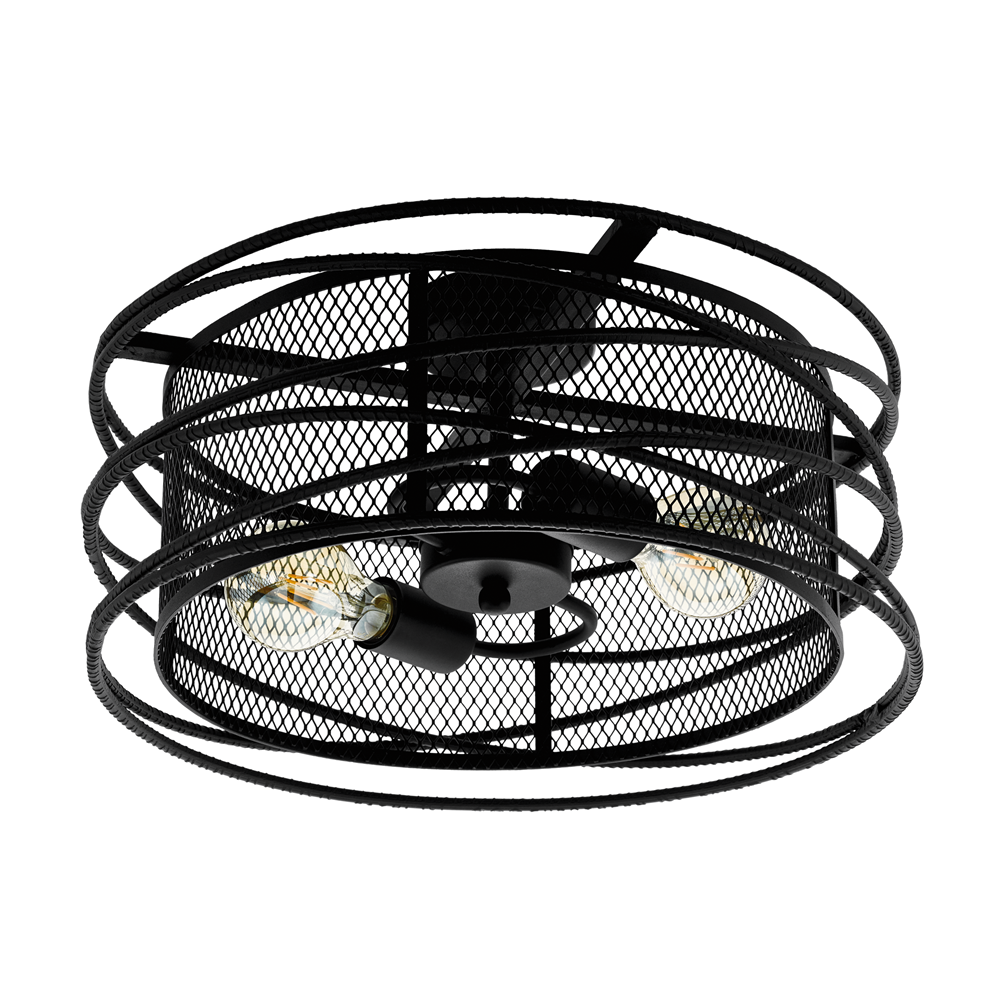 Черен кръгъл плафон с нестандартен дизайн, две крушки, изработен от стомана, Eglo серия Blackwater.