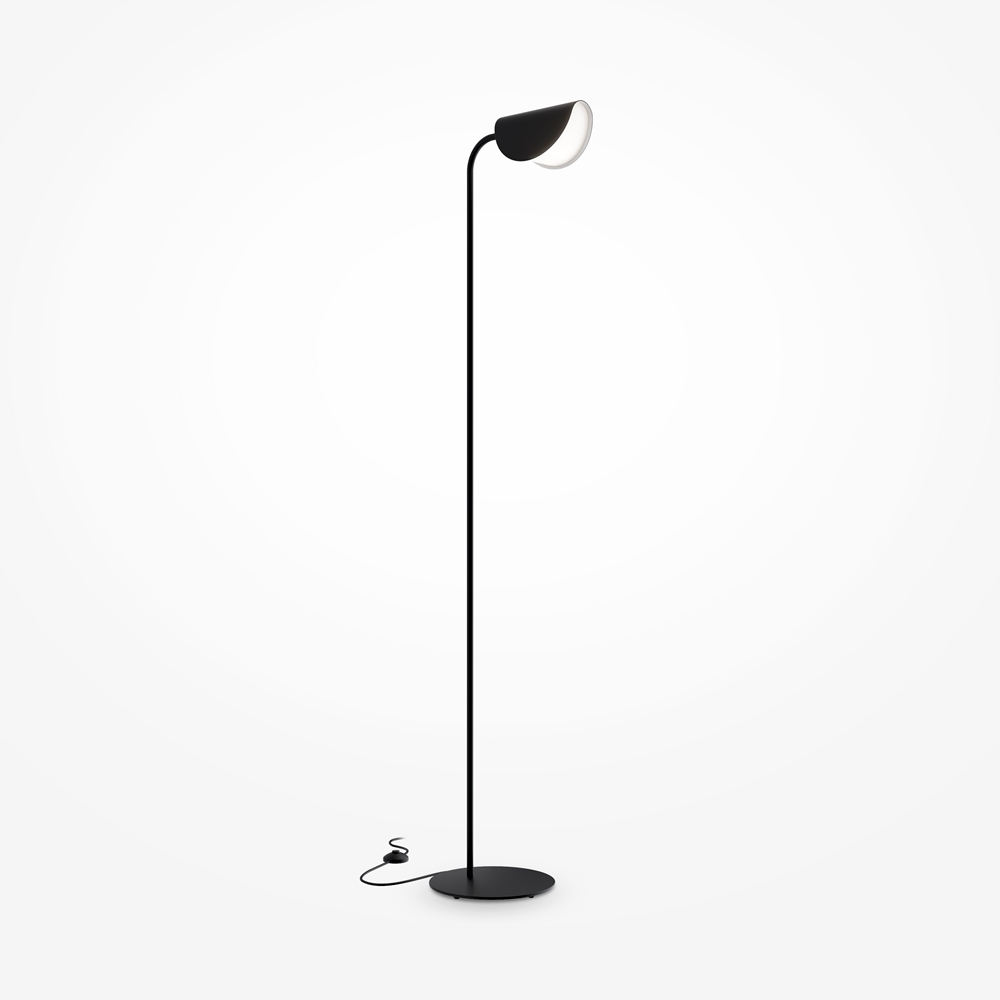 Черен лампион, изработен с метална кръгла основа, дълго рамо и извита чашка Maytoni, серия Mollis.