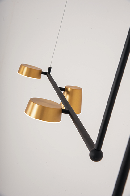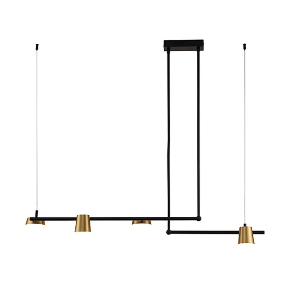 Черен LED пендел с две метални рамена и четири златисти чашки с различна форма Zambelis, серия Thalia.
