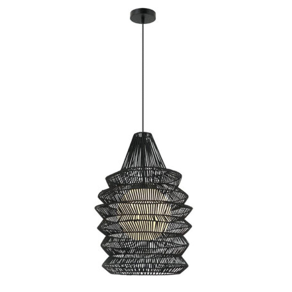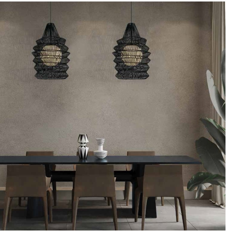 Черен пендел с оригинален ратанов абажур и регулируема височина Zambelis.