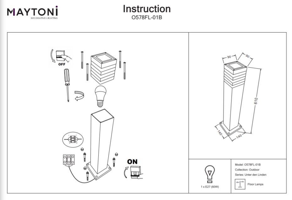 - Мощност: 1 х 60W