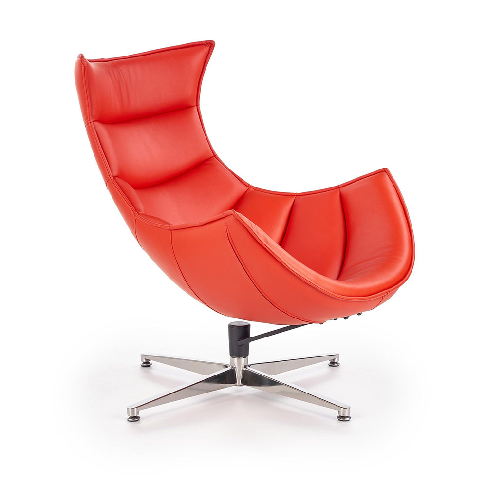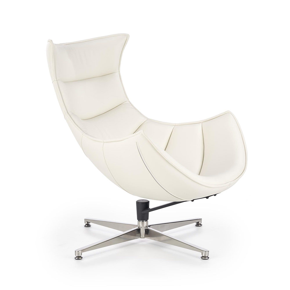 Бяло кожено кресло с яйцевидна форма-снимка отстрани