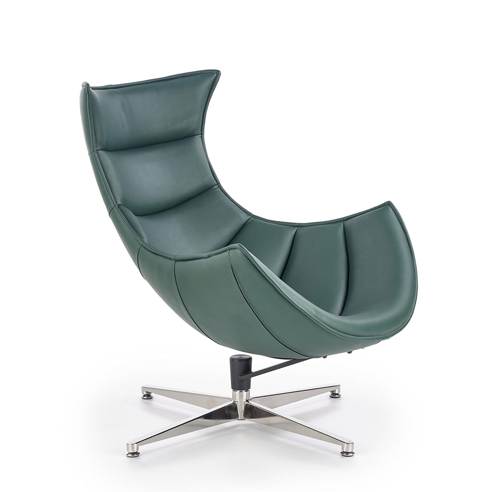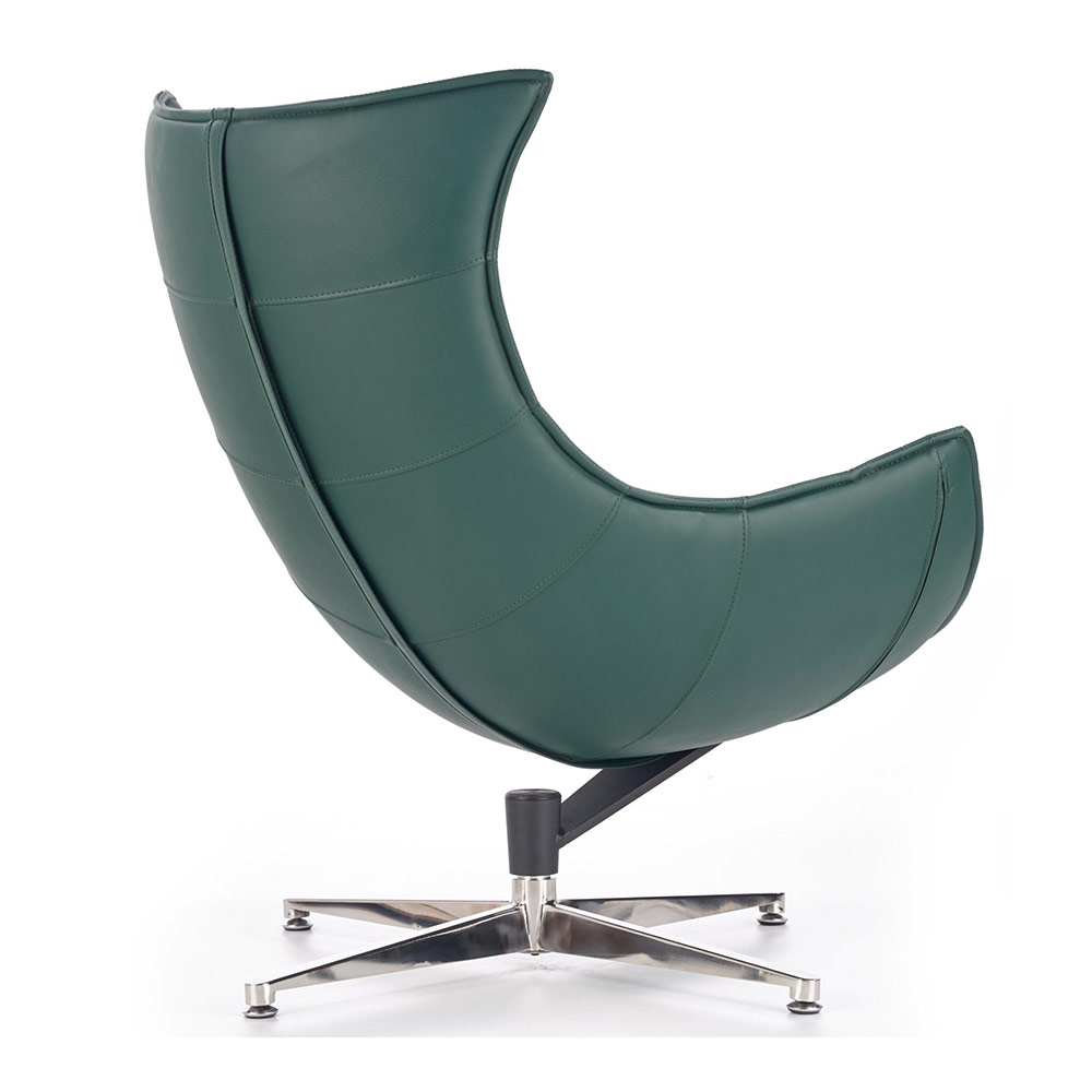 Тъмнозелено кожено кресло с яйцевидна форма-снимка отзад