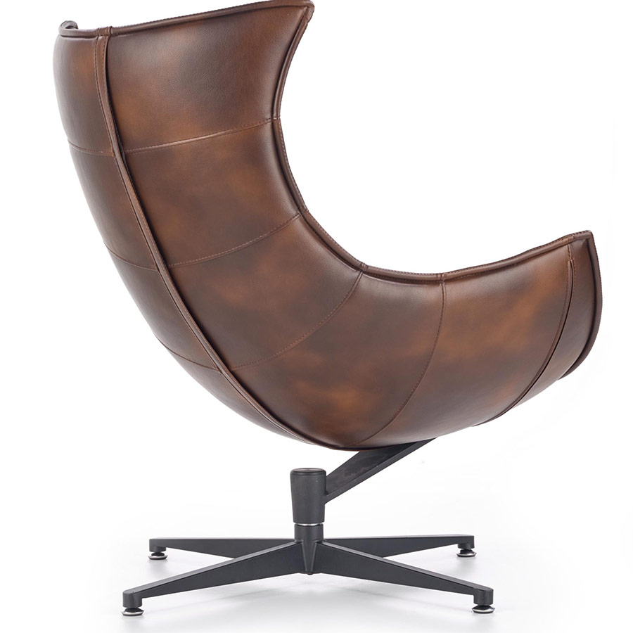 Тъмнокафяво кожено кресло с яйцевидна форма