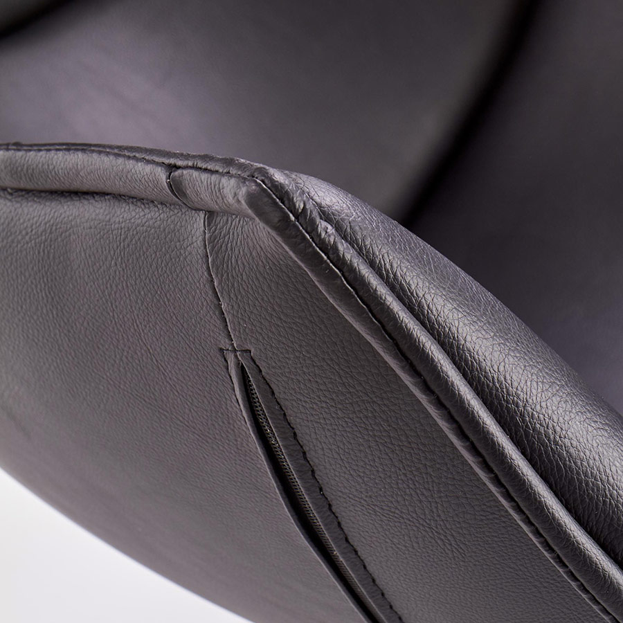 Черно кожено кресло с яйцевидна форма-снимка отблизо