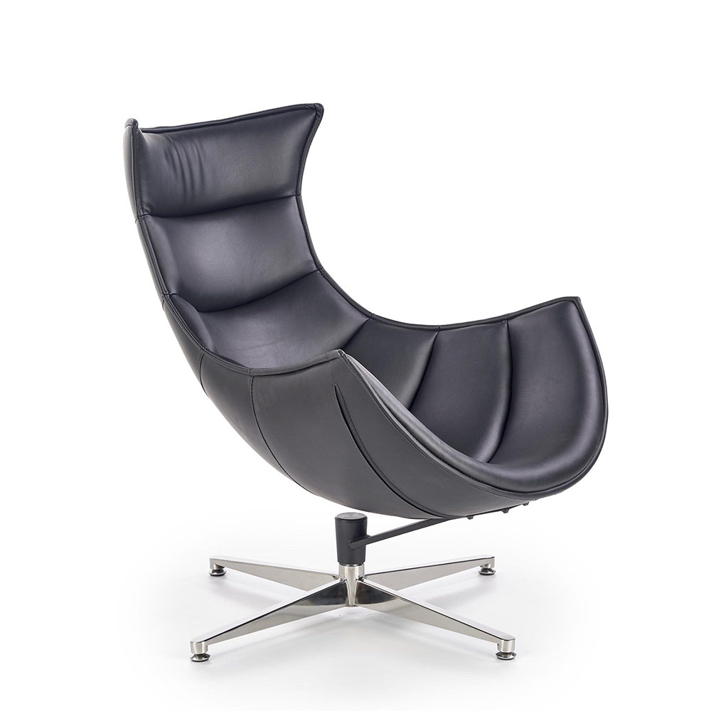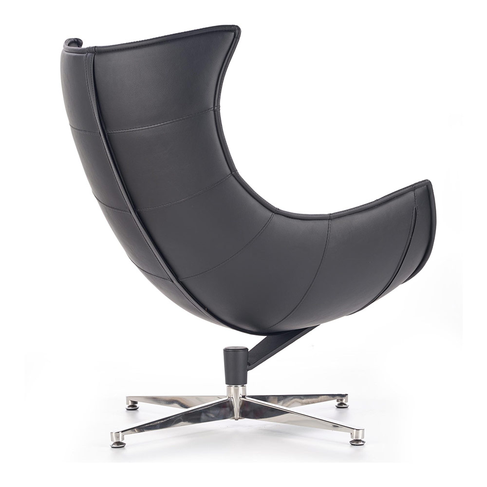 Черно кожено кресло с яйцевидна форма-снимка отстрани