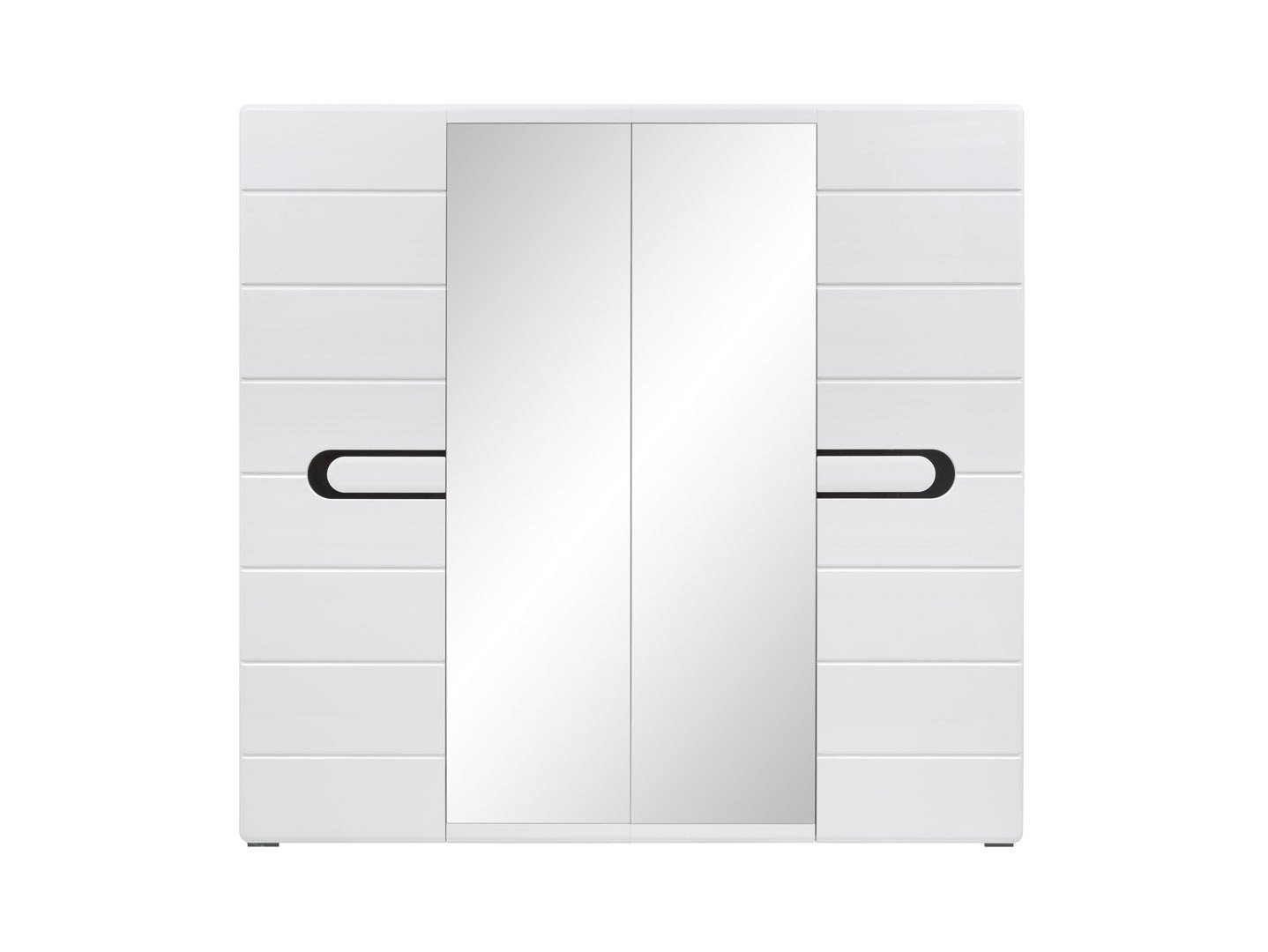 Четирикрилен гардероб с бял лак и 2 огледала Бирон
