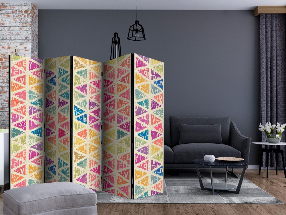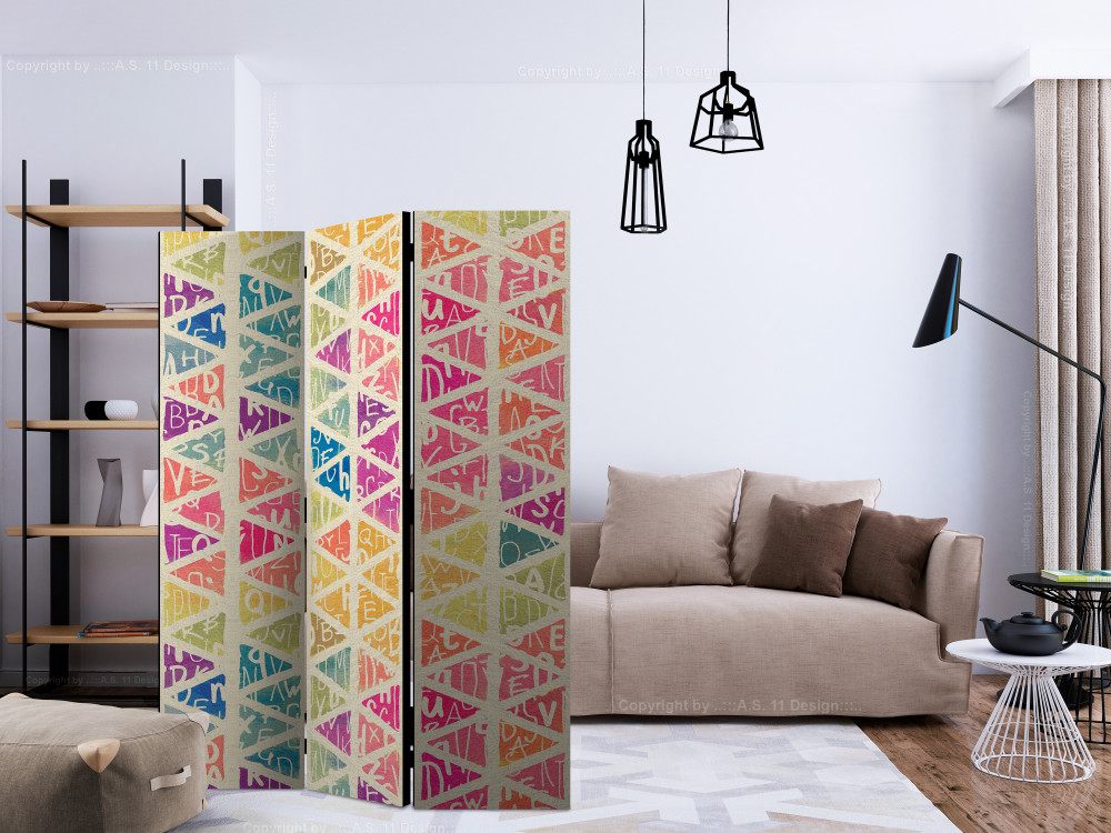 Срокът за доставка на този двустранен параван с букви и цветни геометрични форми е 14 – 21 дни.