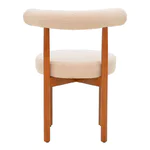 Седалката и облегалката са тапицирани с плътна букле материя, която придава мекота и уютен визуален ефект.