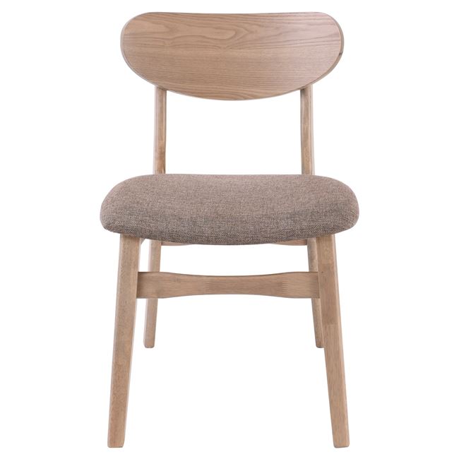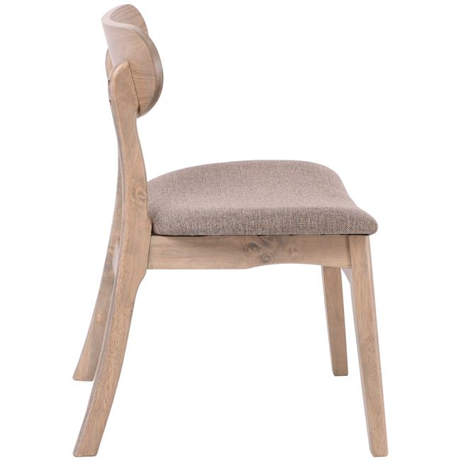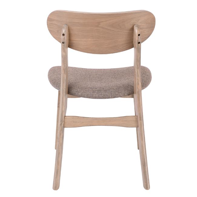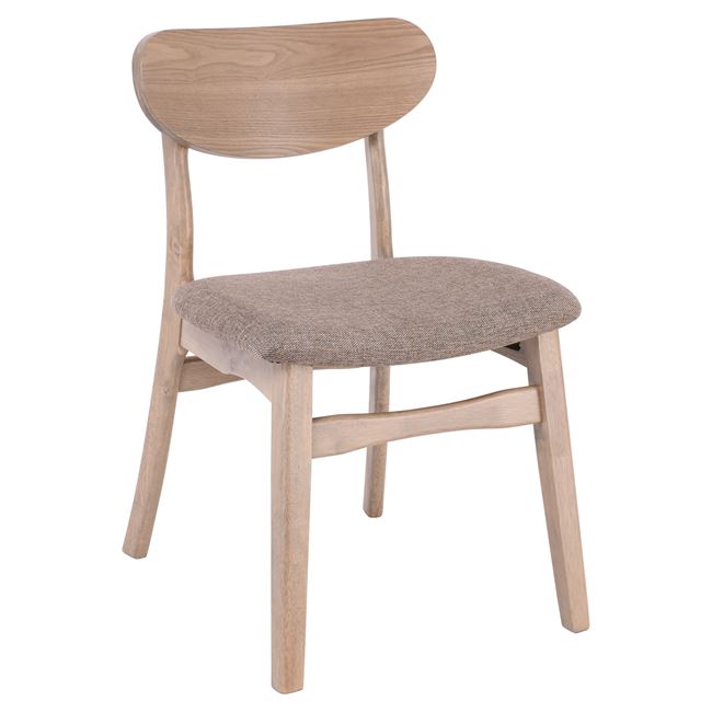 Дървен стол с основа в цвят опушен бук и тапицирана седалка в сиво-кафяв цвят.
