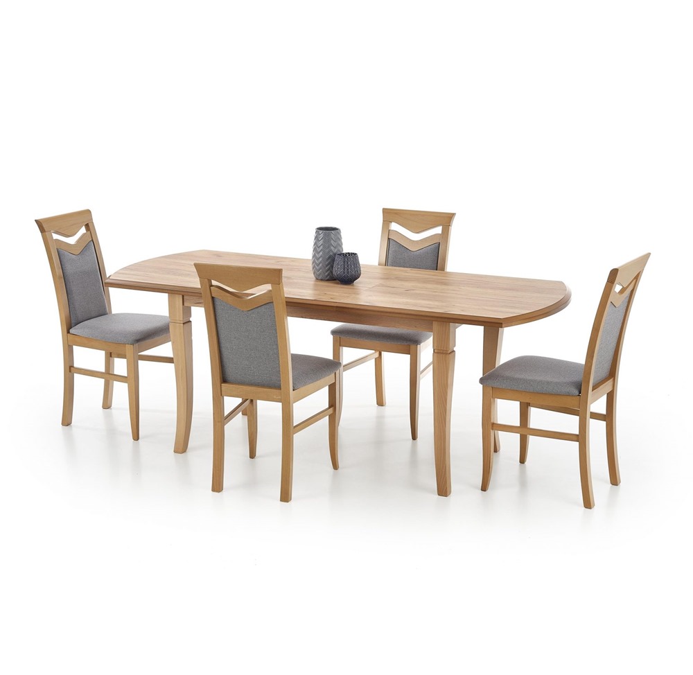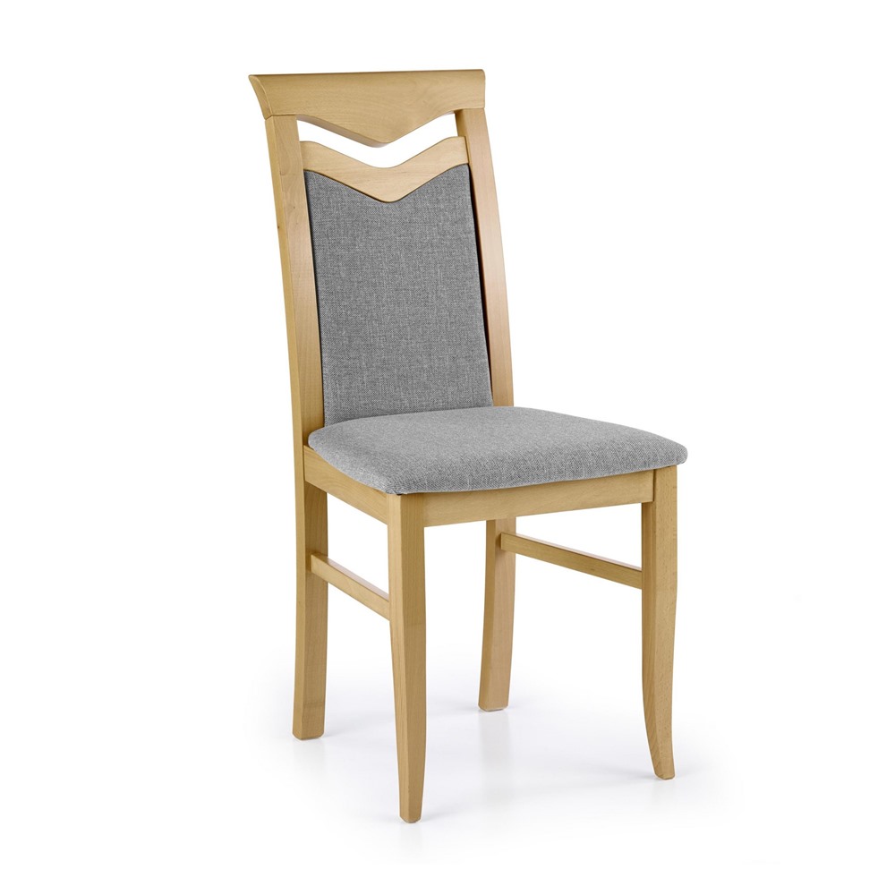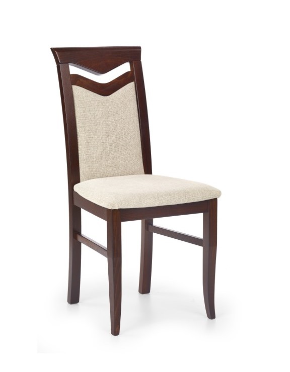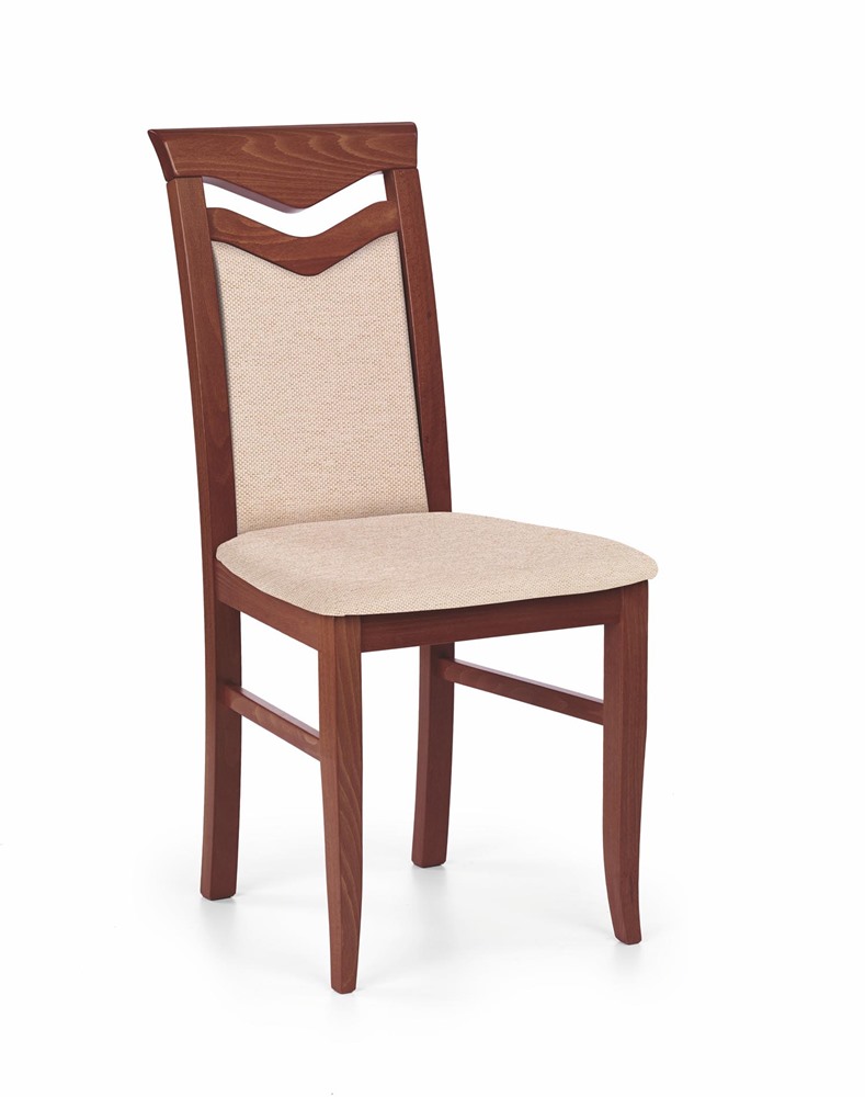 Дървен трапезен стол от масив (бук) с текстилна дамаска на седалката и облегалката в седем цвята.