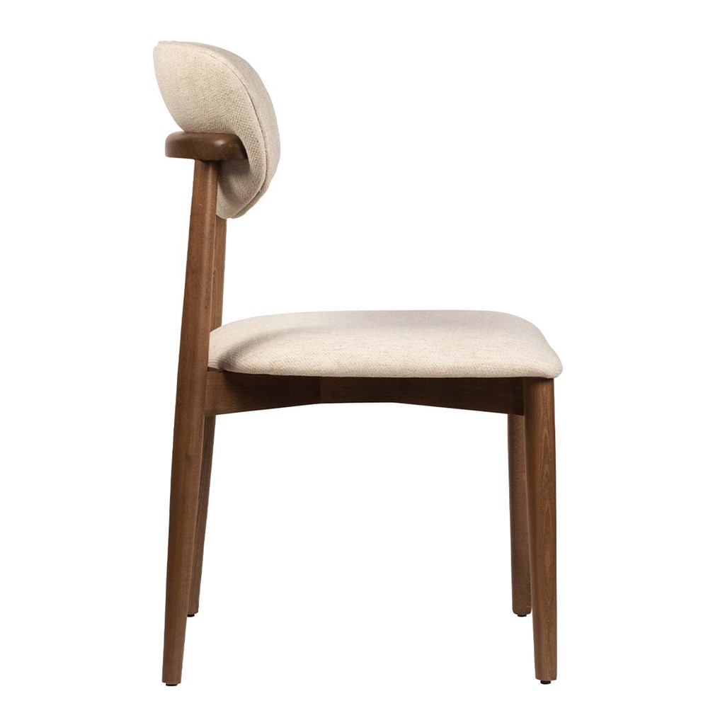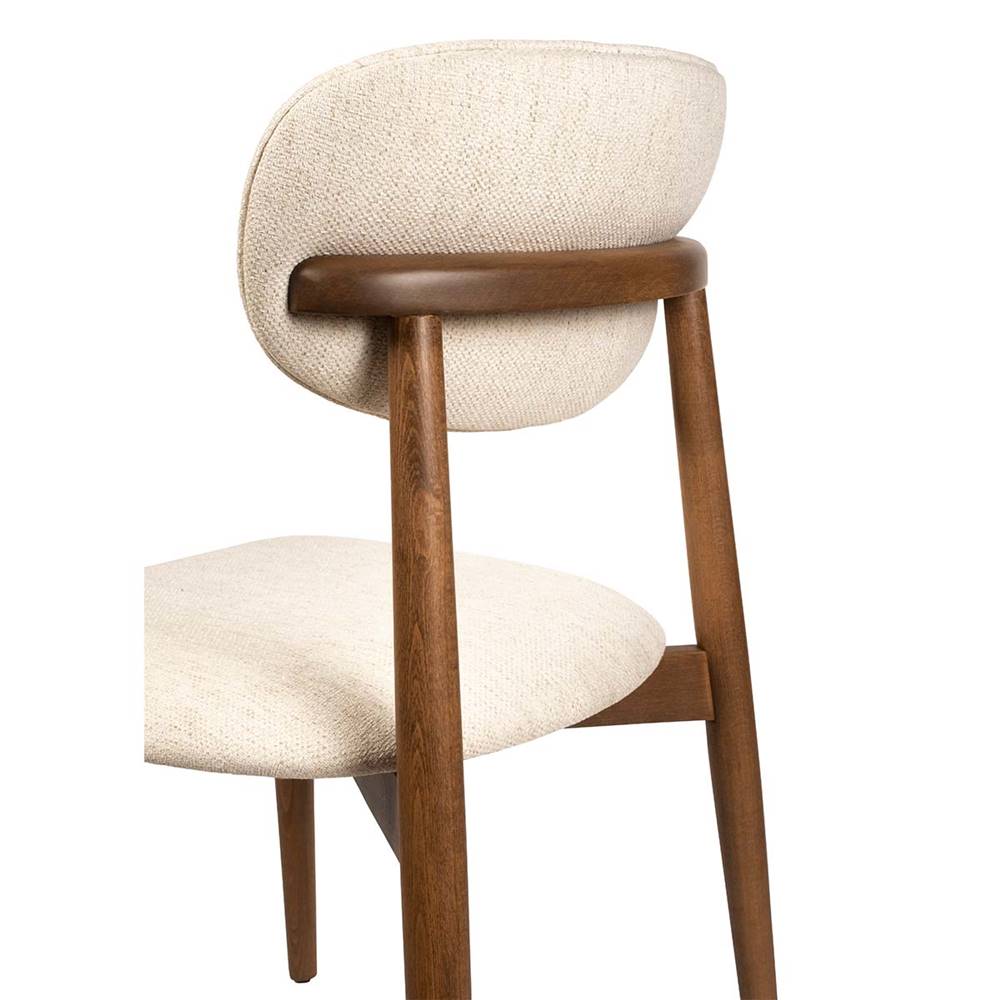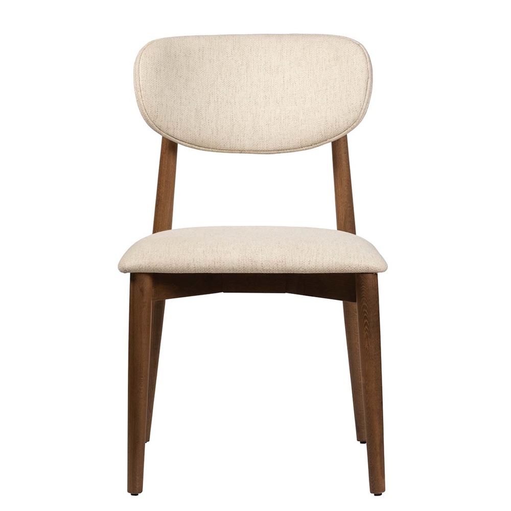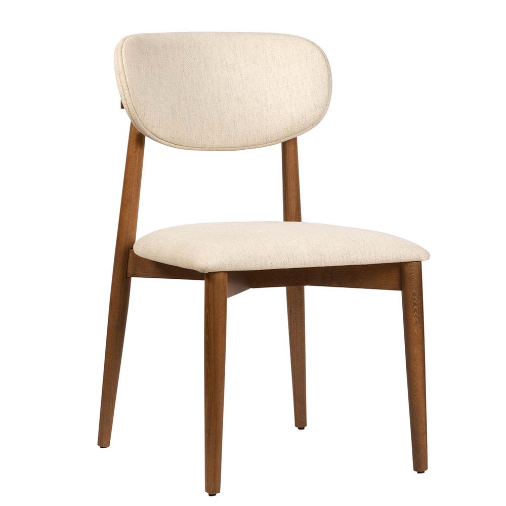 Този стилен дървен трапезен стол с класическа визия е изработен с основа от дърво масив и текстилна дамаска в цвят крем.