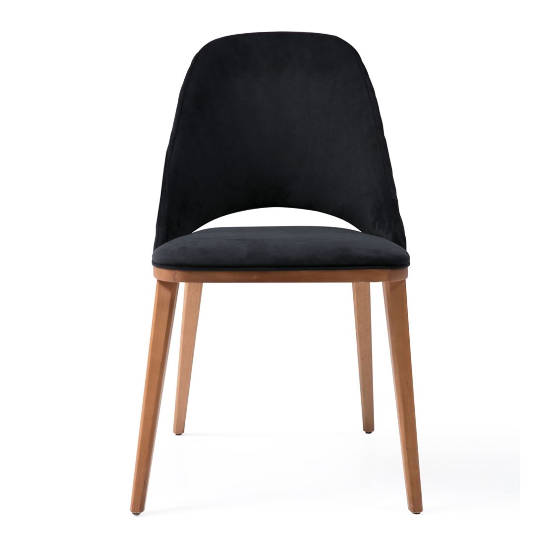 Дървен трапезен стол с текстилна тапицерия-черен, отпред