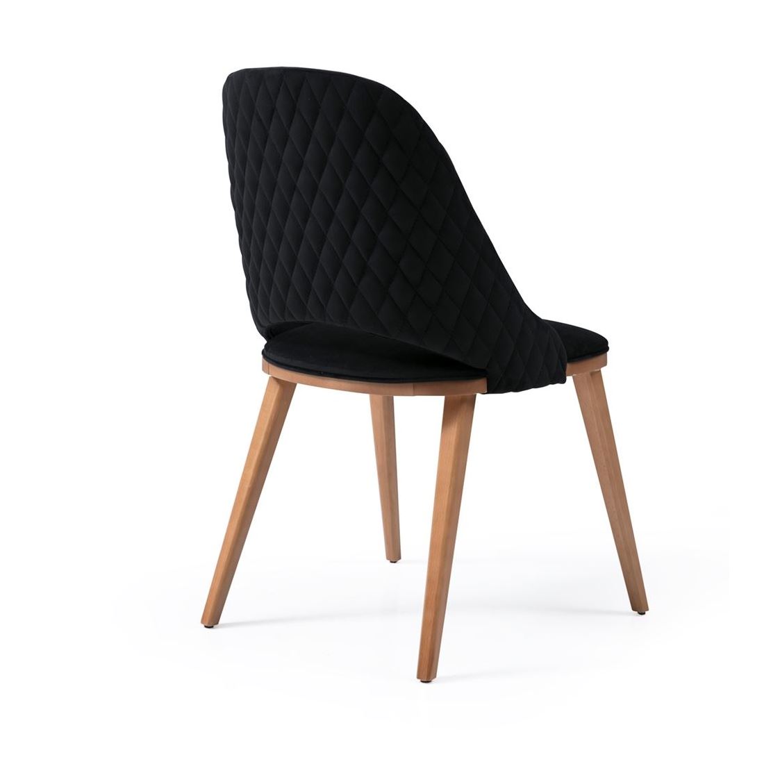 Дървен трапезен стол с текстилна тапицерия-черен, отзад