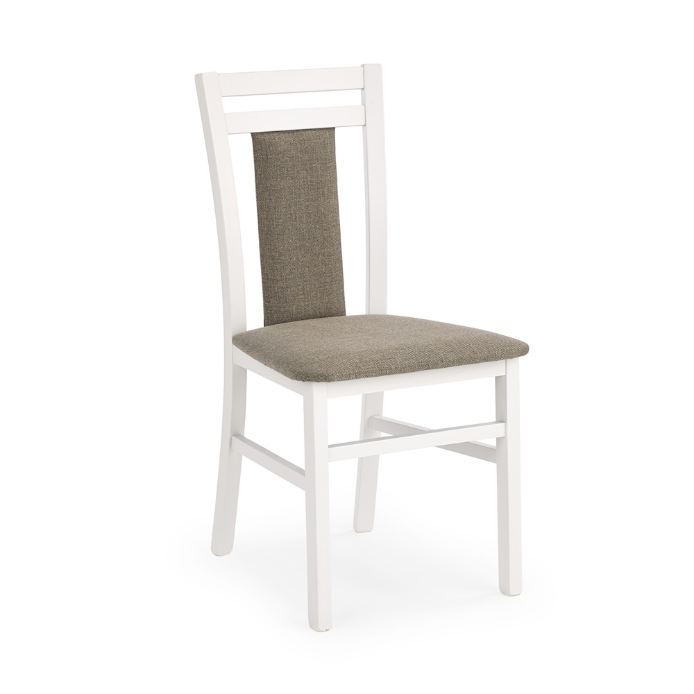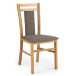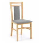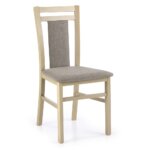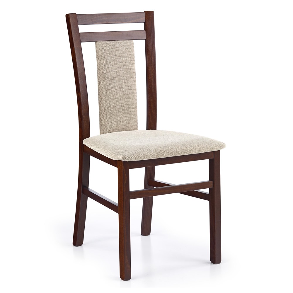 Дървен трапезен стол от масивно буково дърво с текстилна дамаска на седалката и облегалката в шест цвята.