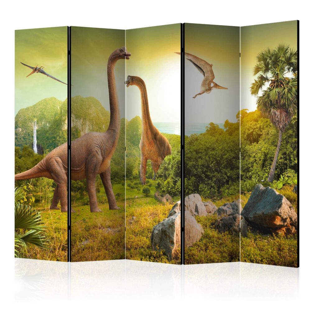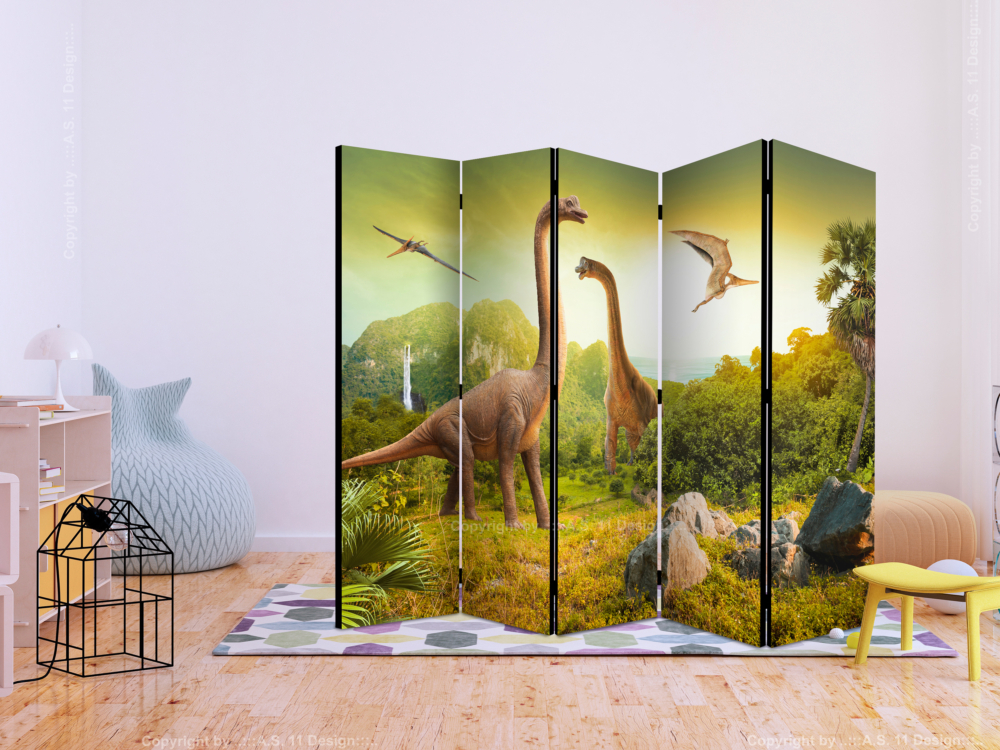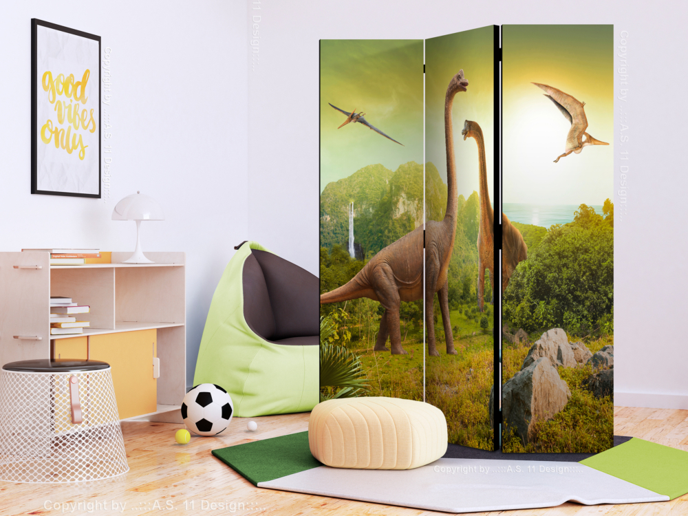 Този декоративен параван с динозаври е оригинална декорация за всеки съвременен интериор. Изработен е от дървена рамка с двустранен печат върху флизалиново платно. Благодарение на оригиналния мотив с качество на печата Full HD, този параван ще придаде неповторим чар на всяко помещение!
