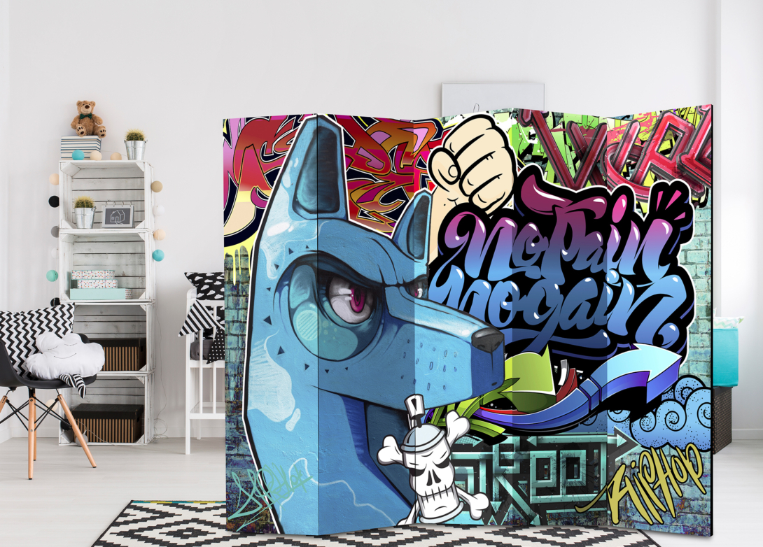 Този декоративен параван с графити е оригинална декорация за всеки съвременен интериор. Състои се от 5 части, изработен е от дърво и е с двустранен печат. Благодарение на оригиналния мотив с качество на печата Full HD, този параван ще придаде неповторим чар на всяко помещение у дома!