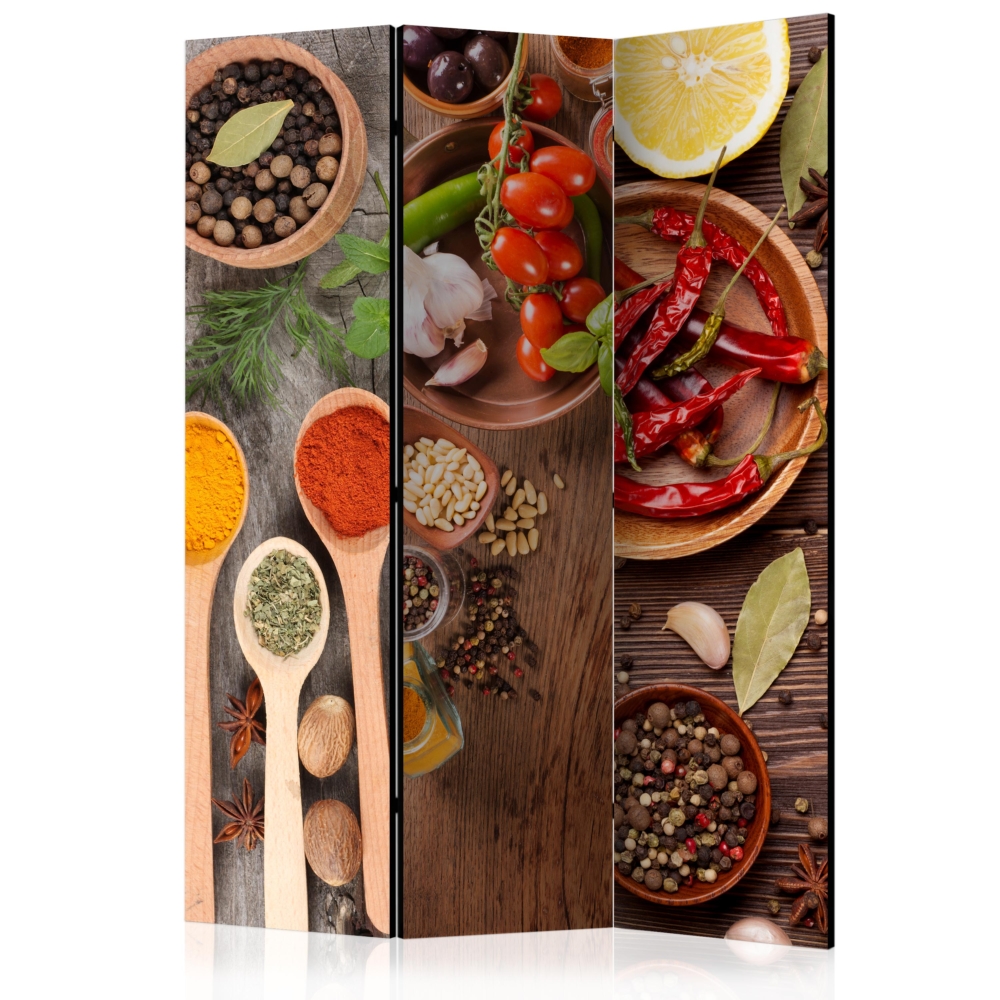 Декоративният параван за кухня Tastes of the World се състои от 3 части, изработен е от дърво и е с двустранен печат на цветни подправки и билки за готвене. Благодарение на оригиналния мотив с качество на печата Full HD, този параван ще придаде неповторим чар на всяко помещение у дома!