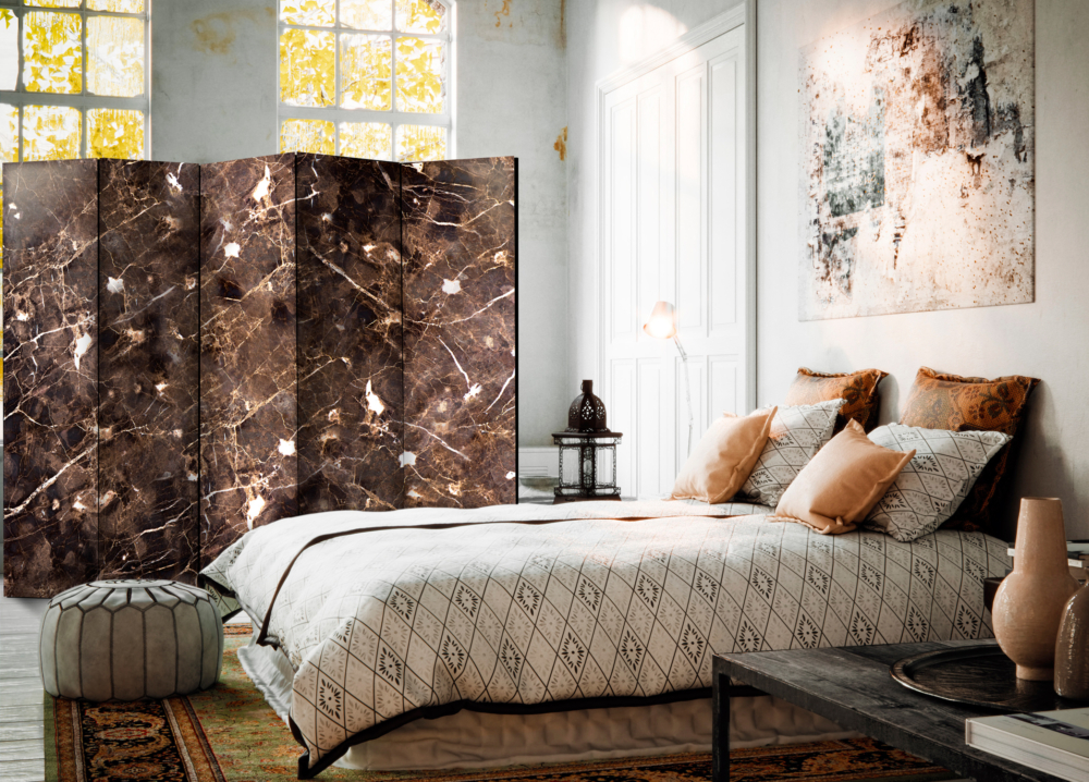 Декоративен сгъваем параван с мраморен ефект в кафяво - 5 крила
