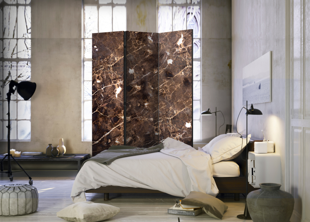 Характеристики на паравани за стая от GRANDecor Този декоративен сгъваем параван с мраморен ефект в кафяво, е красива декорация за интериор, решен в модерен или класически стил. Изработен е от дървена рамка с двустранен печат върху флизалиново платно. Благодарение на оригиналния мотив с качество на печата Full HD, този параван ще придаде неповторим чар на всяко помещение!