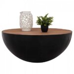 Декоративна холна маса в атрактивна полусферична форма, изработена с плот от акациево дърво и метална основа в два цвята – антично кафяв и черен.