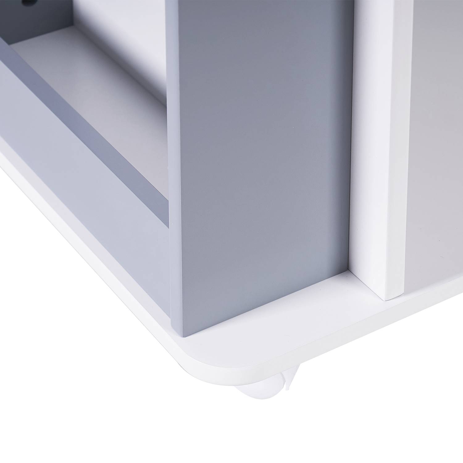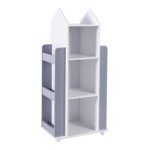 Допълнете детската стая с функционална и стилна етажерка на колелца в елегантни сиво и бяло. Със своя въртящ се на 360° дизайн, тя осигурява удобен достъп до книжки, играчки и любими предмети, като същевременно поддържа реда в помещението.