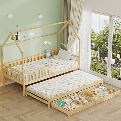 Детско легло с издърпващо се чекмедже на колела (2 цвята)
