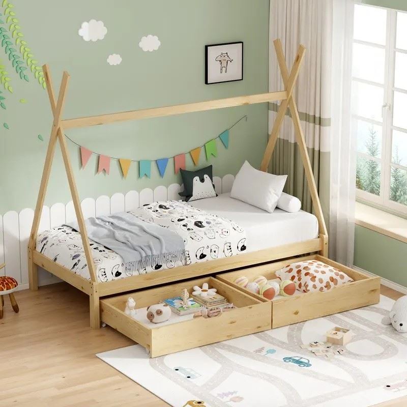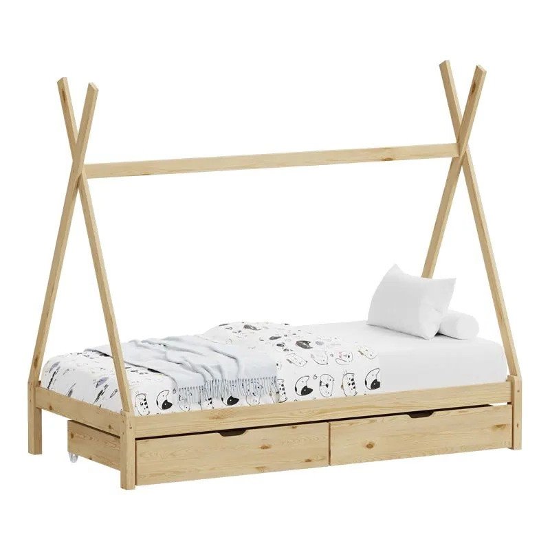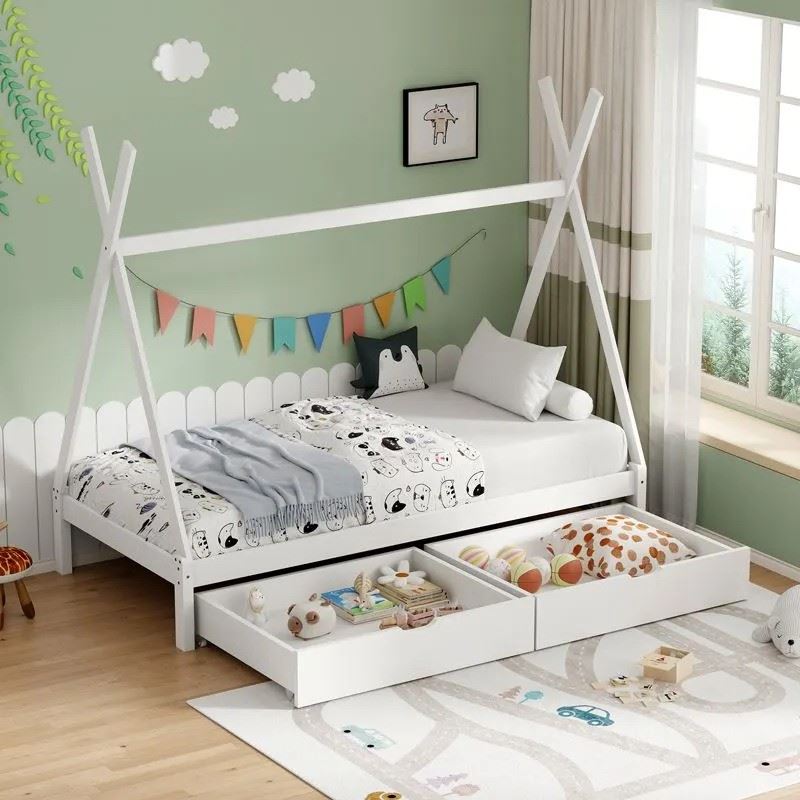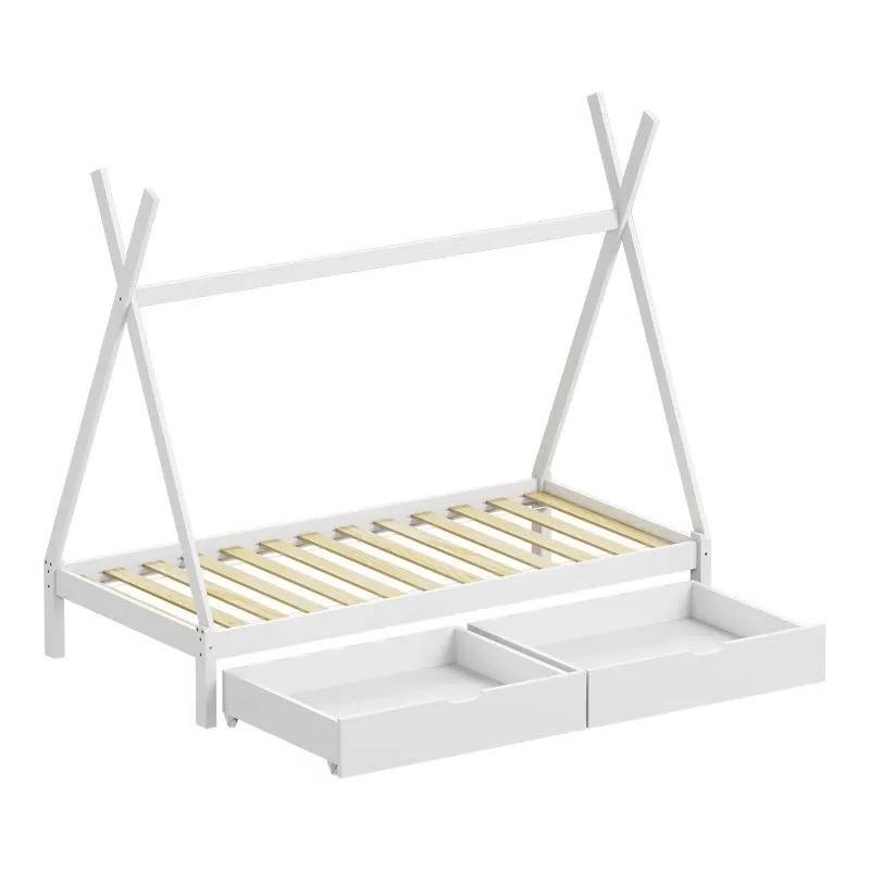 Превърнете детската стая в място за игри и мечти с това очарователно детско легло с две чекмеджета. Със своя забавен дизайн, наподобяващ малка къщичка, то създава уютна и вдъхновяваща среда за всяко дете.