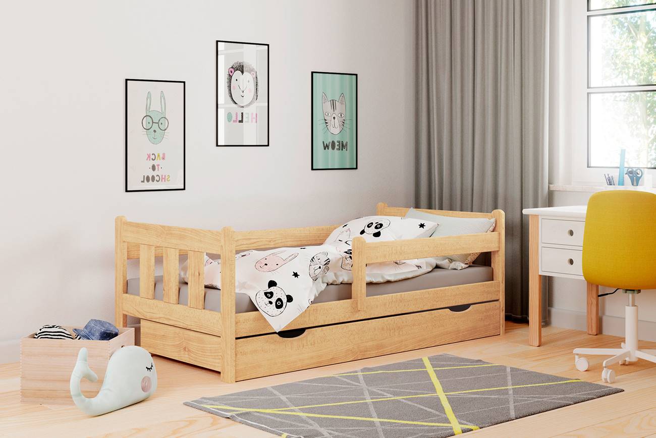 Детско легло с две чекмеджета-натурален, интериор