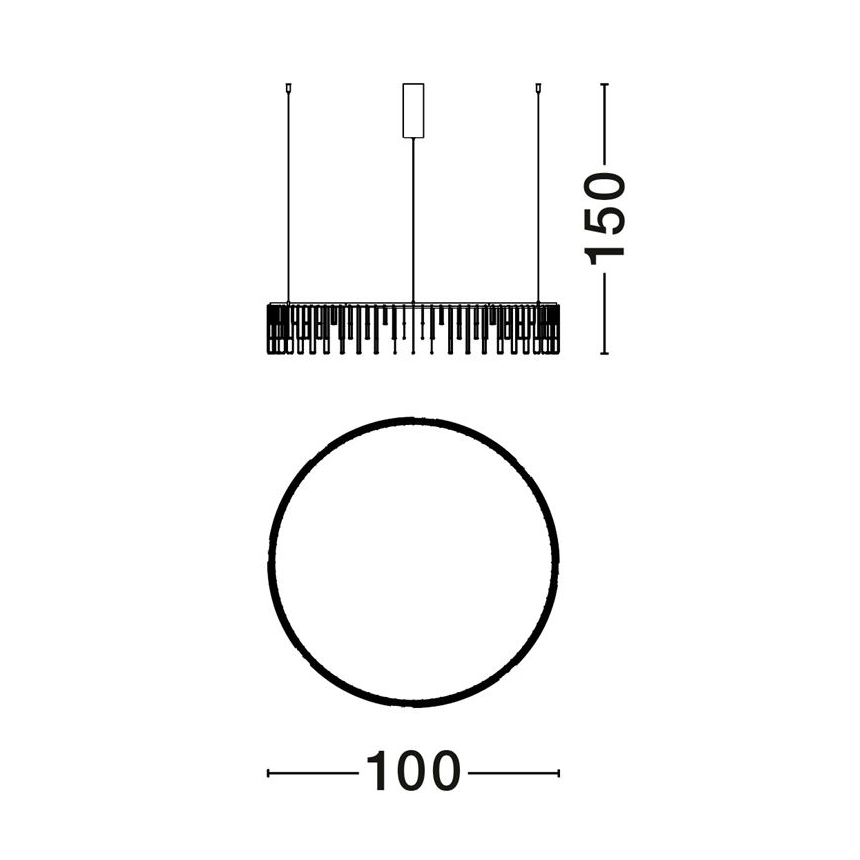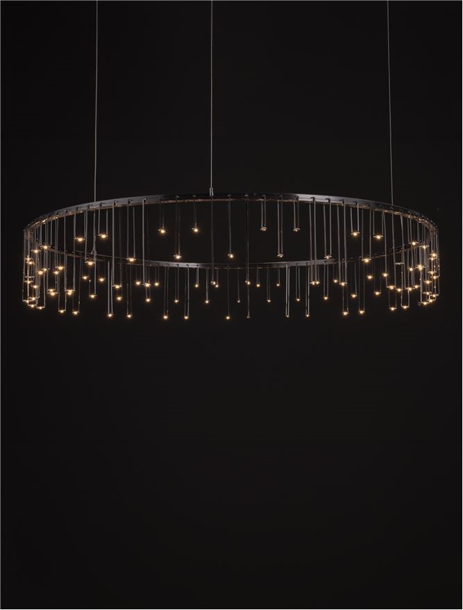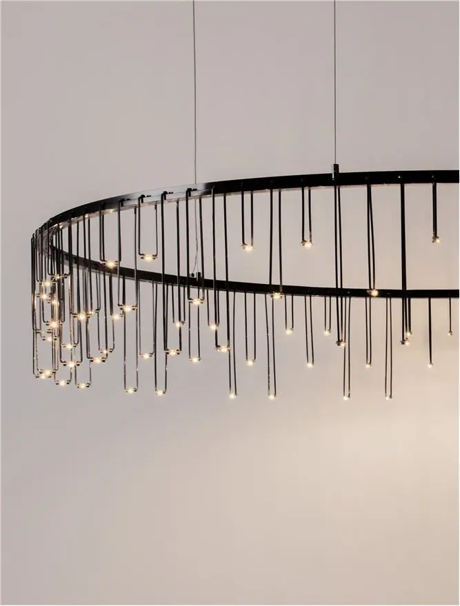 Модерен дизайнерски полилей във формата на обръч с висящи LED лампички.
