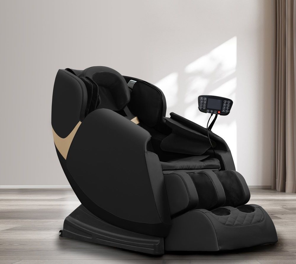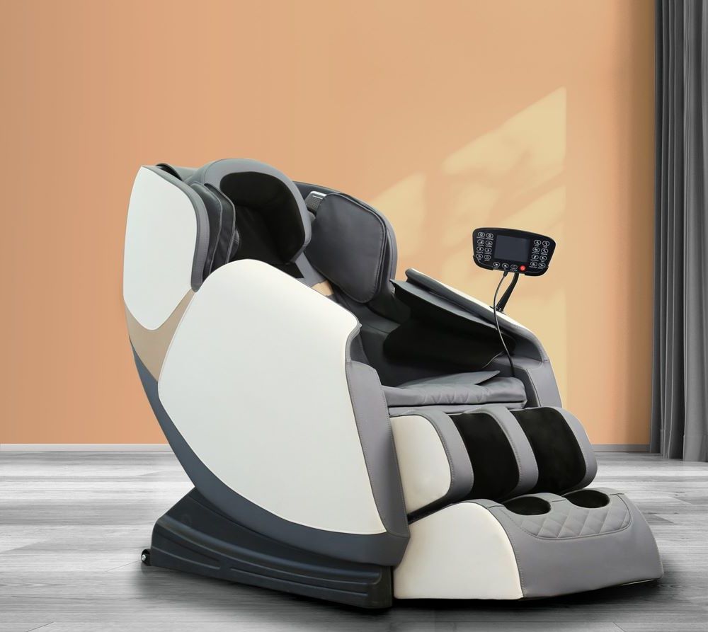 Домашен масажен стол с подгряваща функция Джейд е изработен от еко кожа и се предлага в два цвята: крем със сиво и черен.