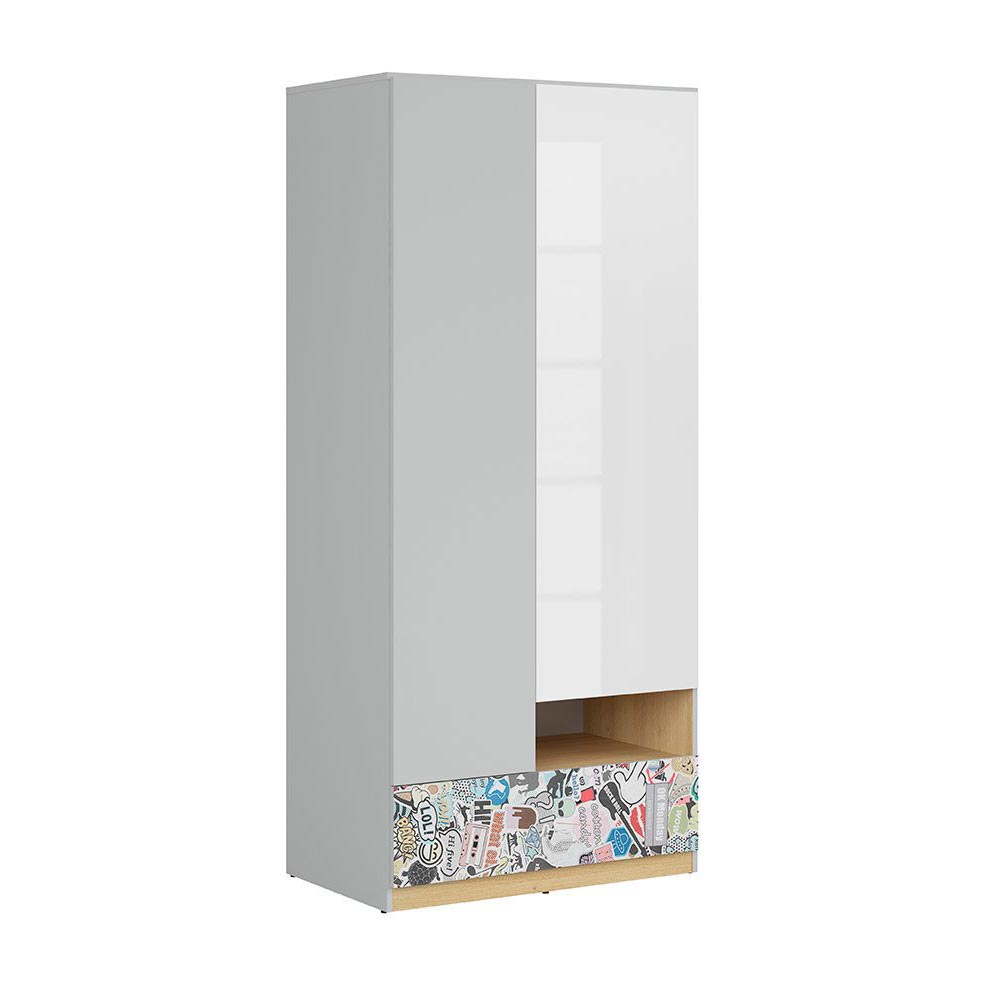 Двукрилен гардероб с бял гланц Нанду - с комикс