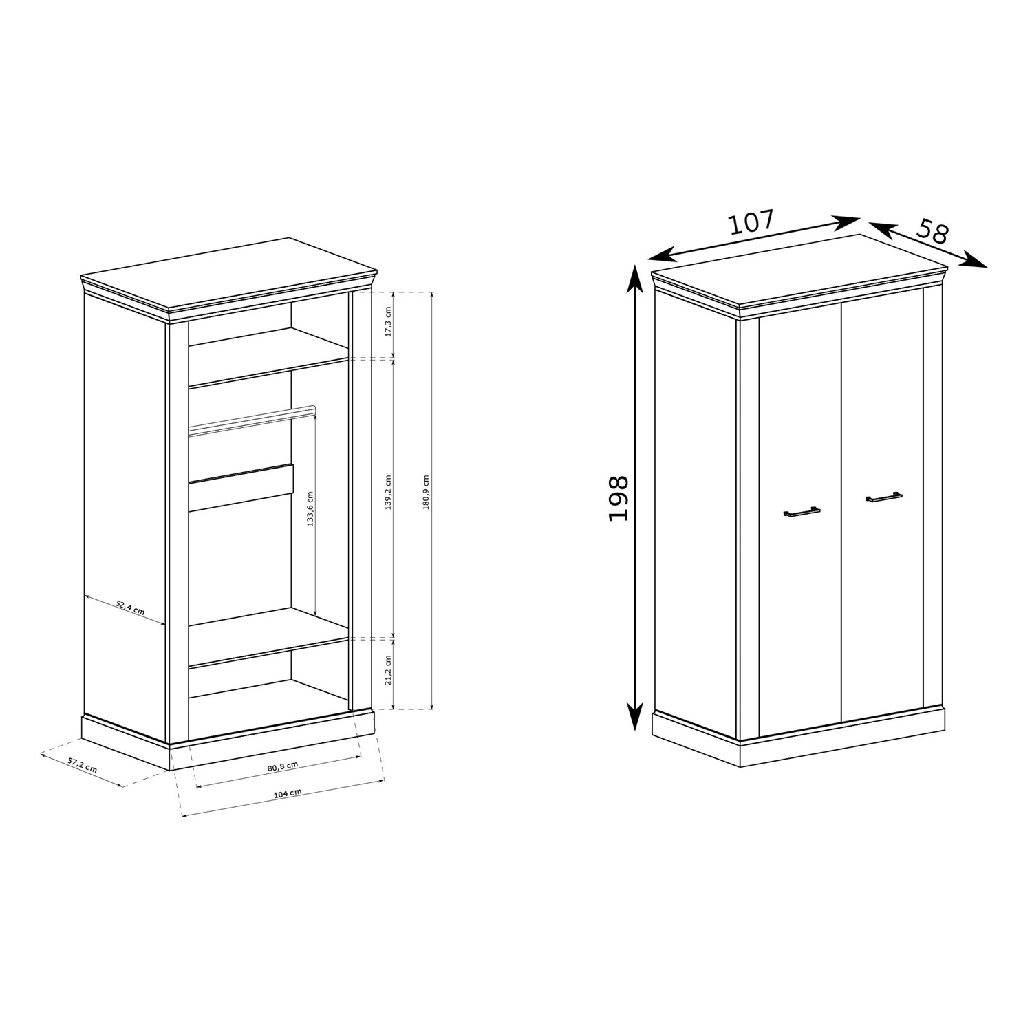 Двукрилният гардероб от серия Antica съчетава стил, функционалност и здравина, като предлага отлично решение за подредена спалня или гардеробна.